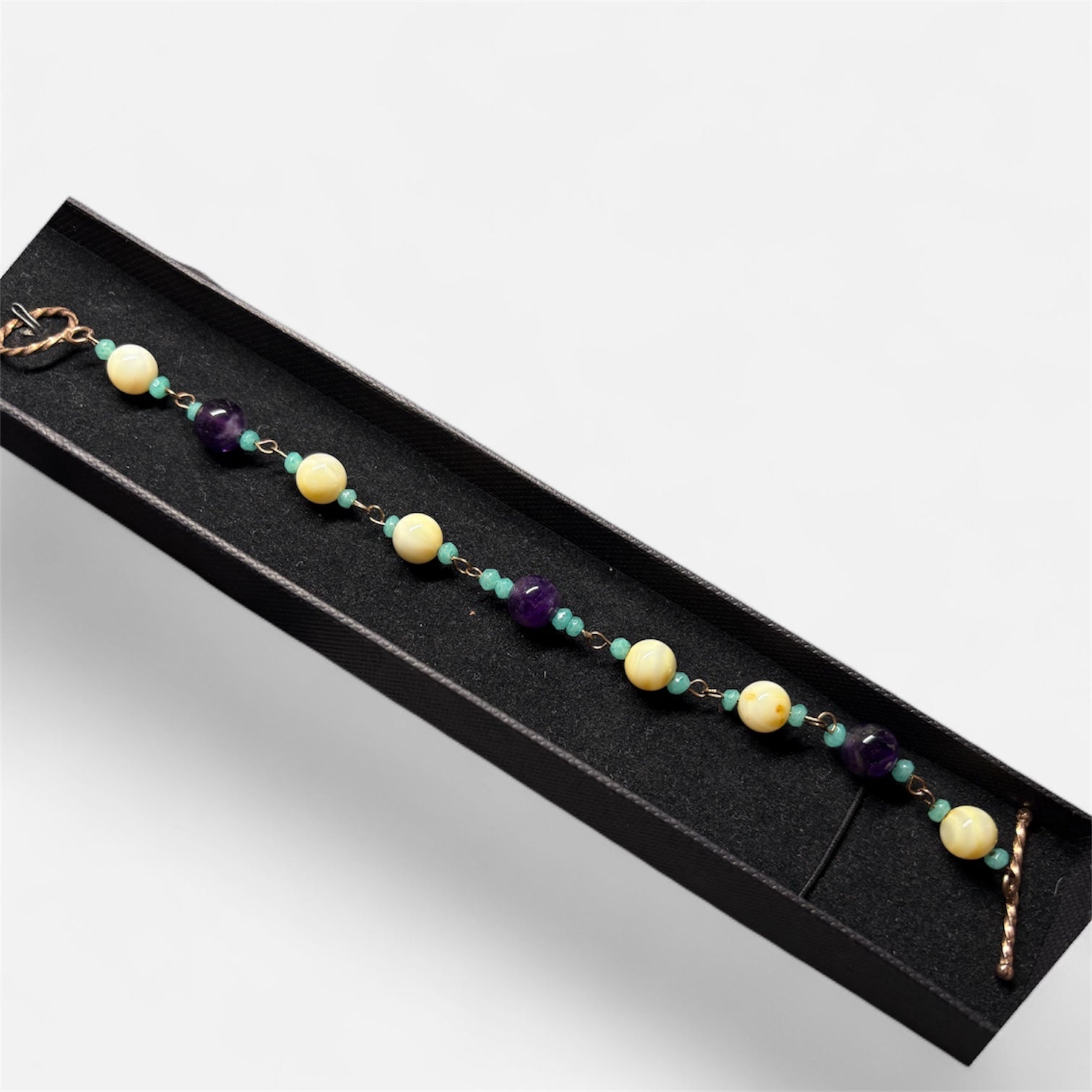 Amethyst Lemon Shell & Aqua Chalcedony Crystal Gemstone Rose Gold 925 Bracelet