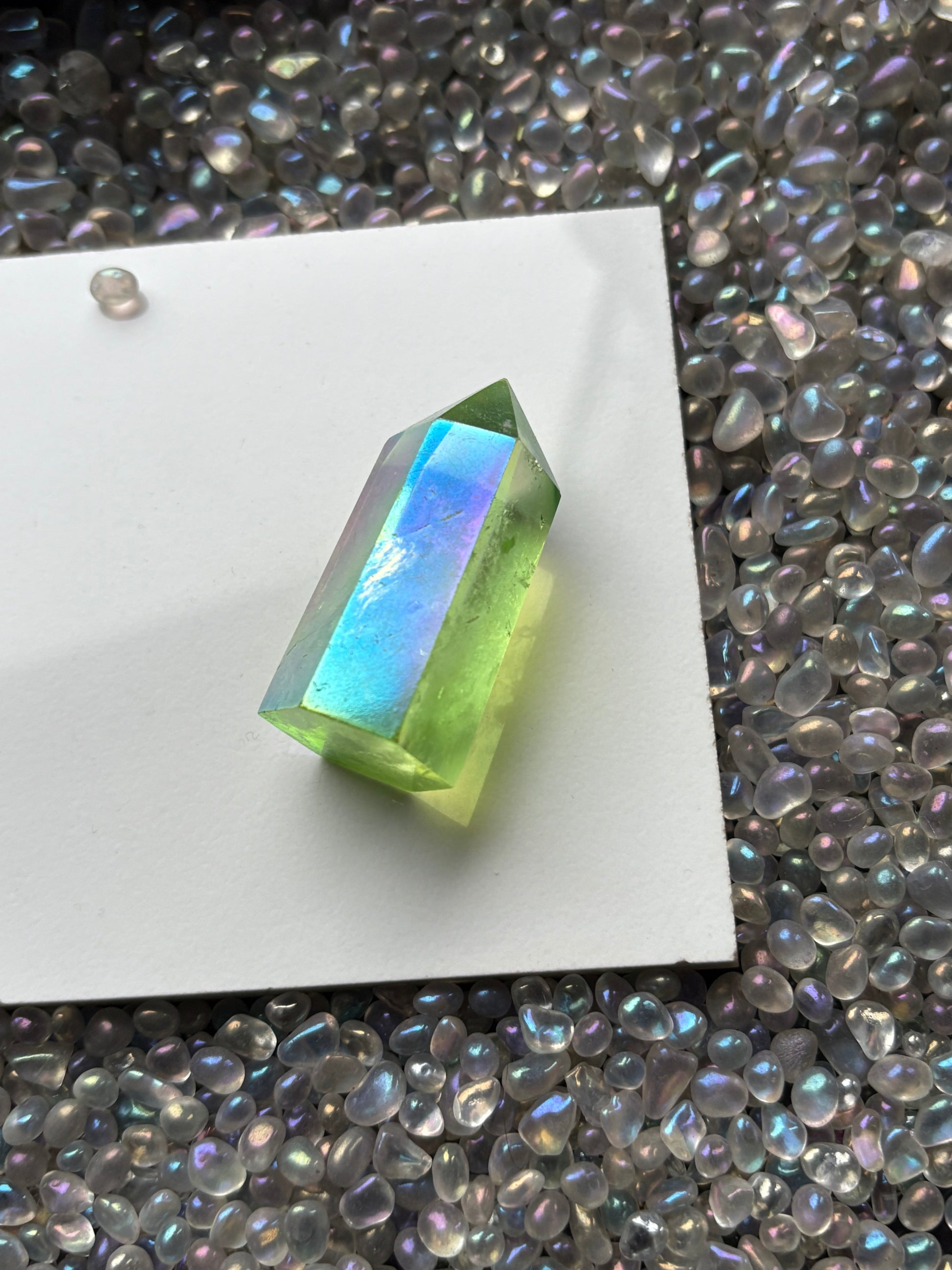 Apple aura is simply Clear Quartz bonded with Nickel; displays a fresh, yellow-green color reminiscent of a Granny Smith