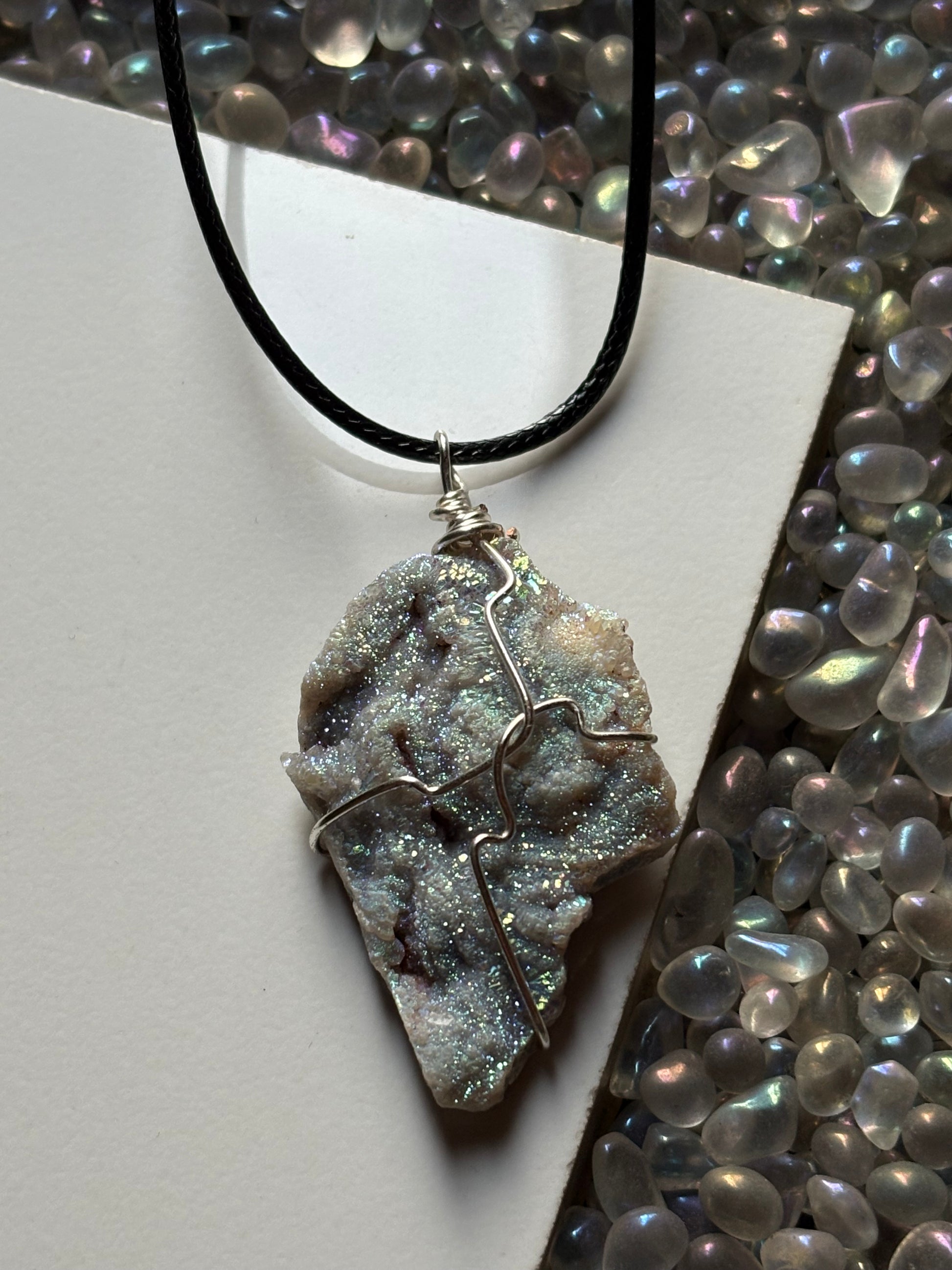 Aura Druzy Chalcedony Crystal Gemstone - Galaxy Slice - Necklace (1)