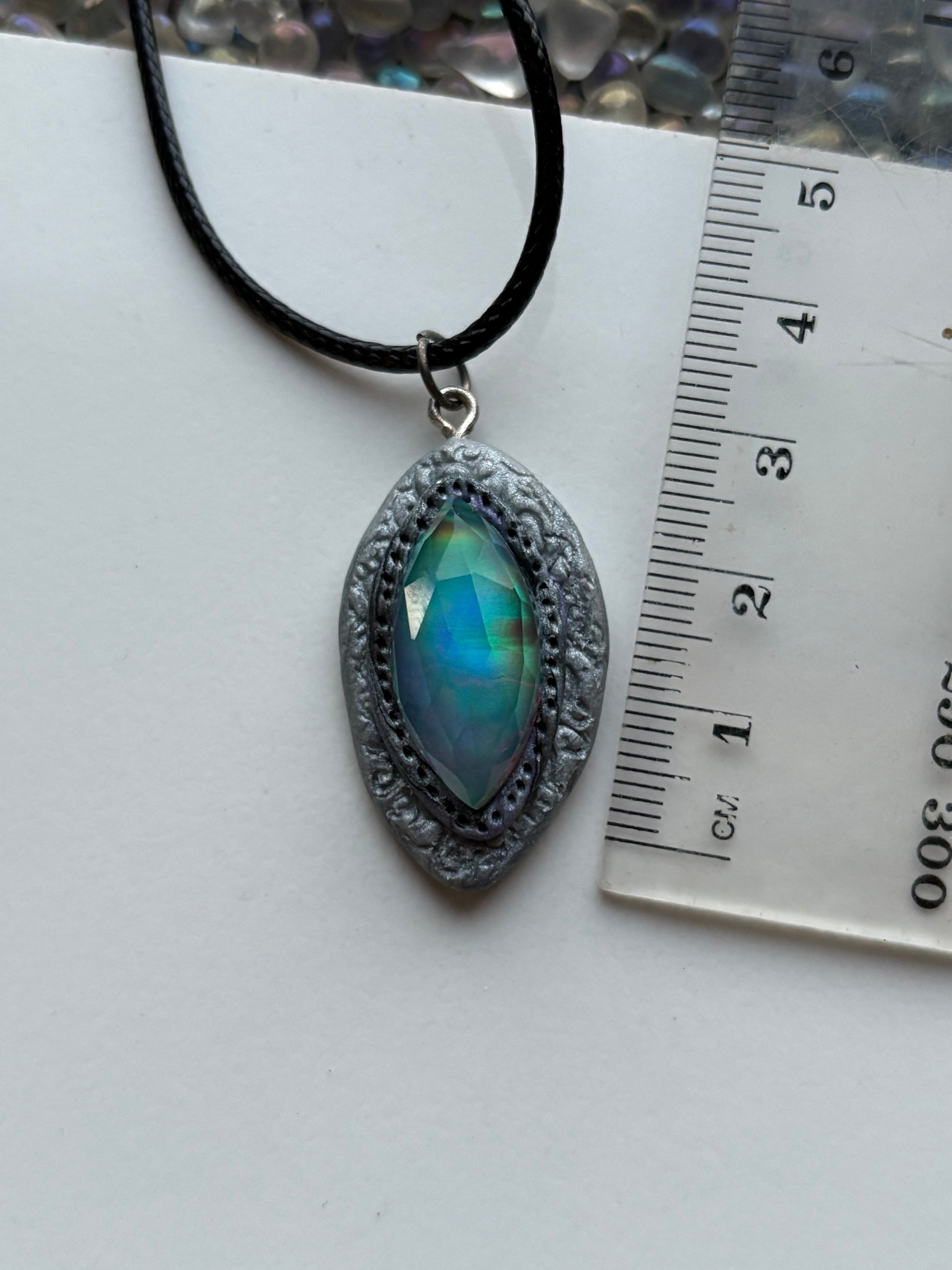 Aurora Opal Doublet Crystal Gemstone - Silver Oval - Necklace