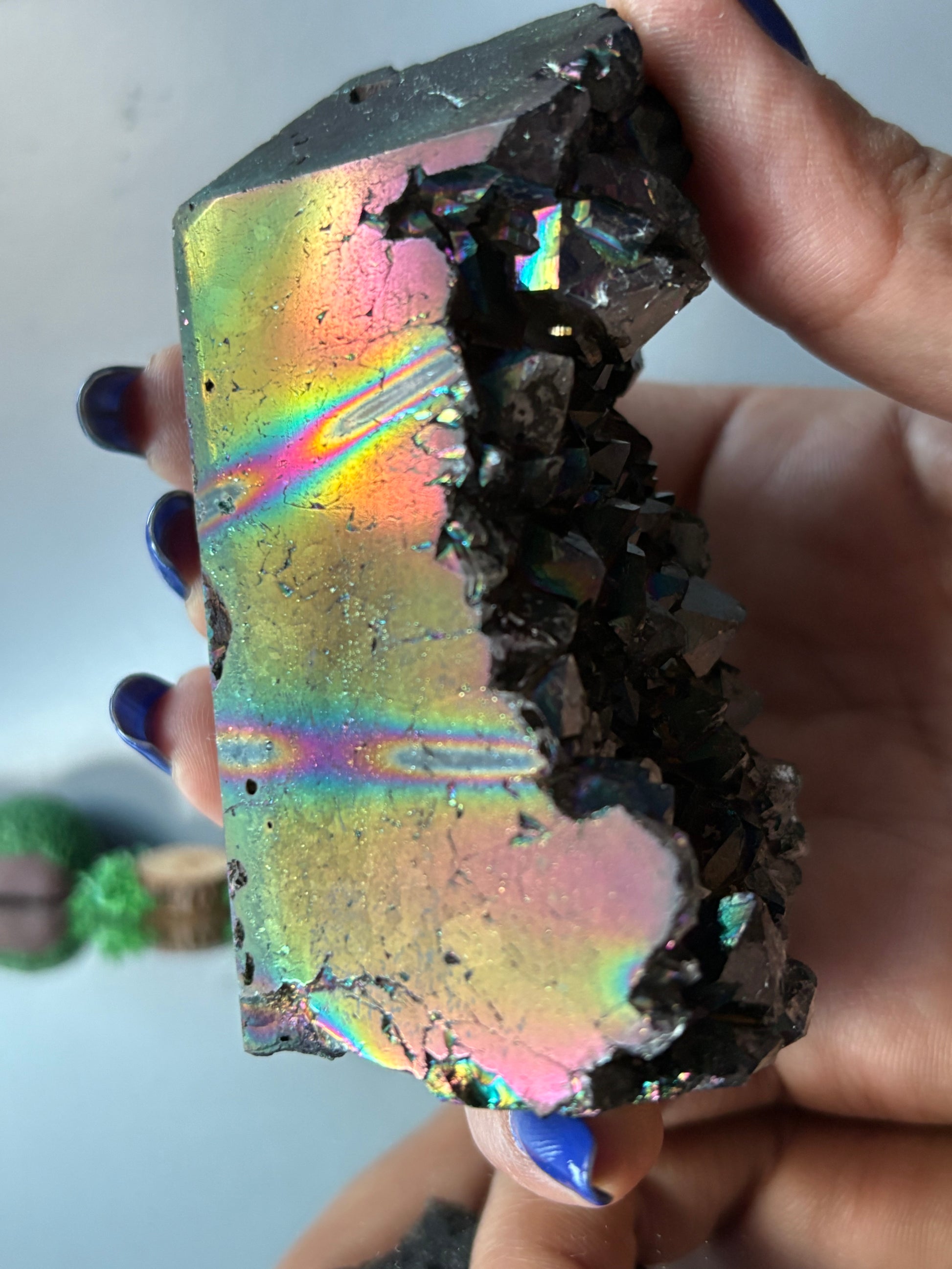 Black Aura Coated Amethyst Gemstone Crystal Cluster Tower Chunk (A)