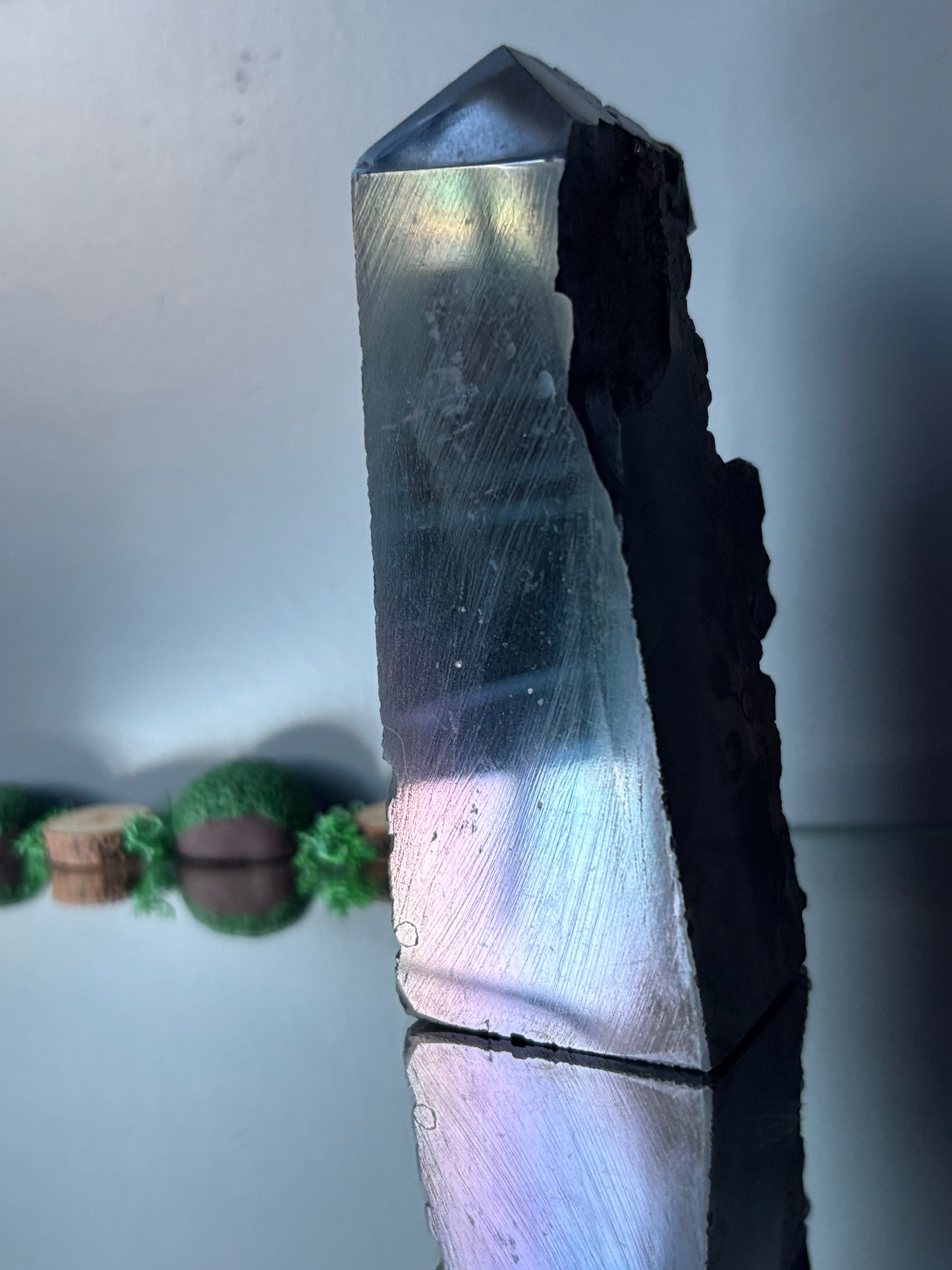 Black Aura Coated Amethyst Gemstone Crystal Cluster Tower Chunk (B)
