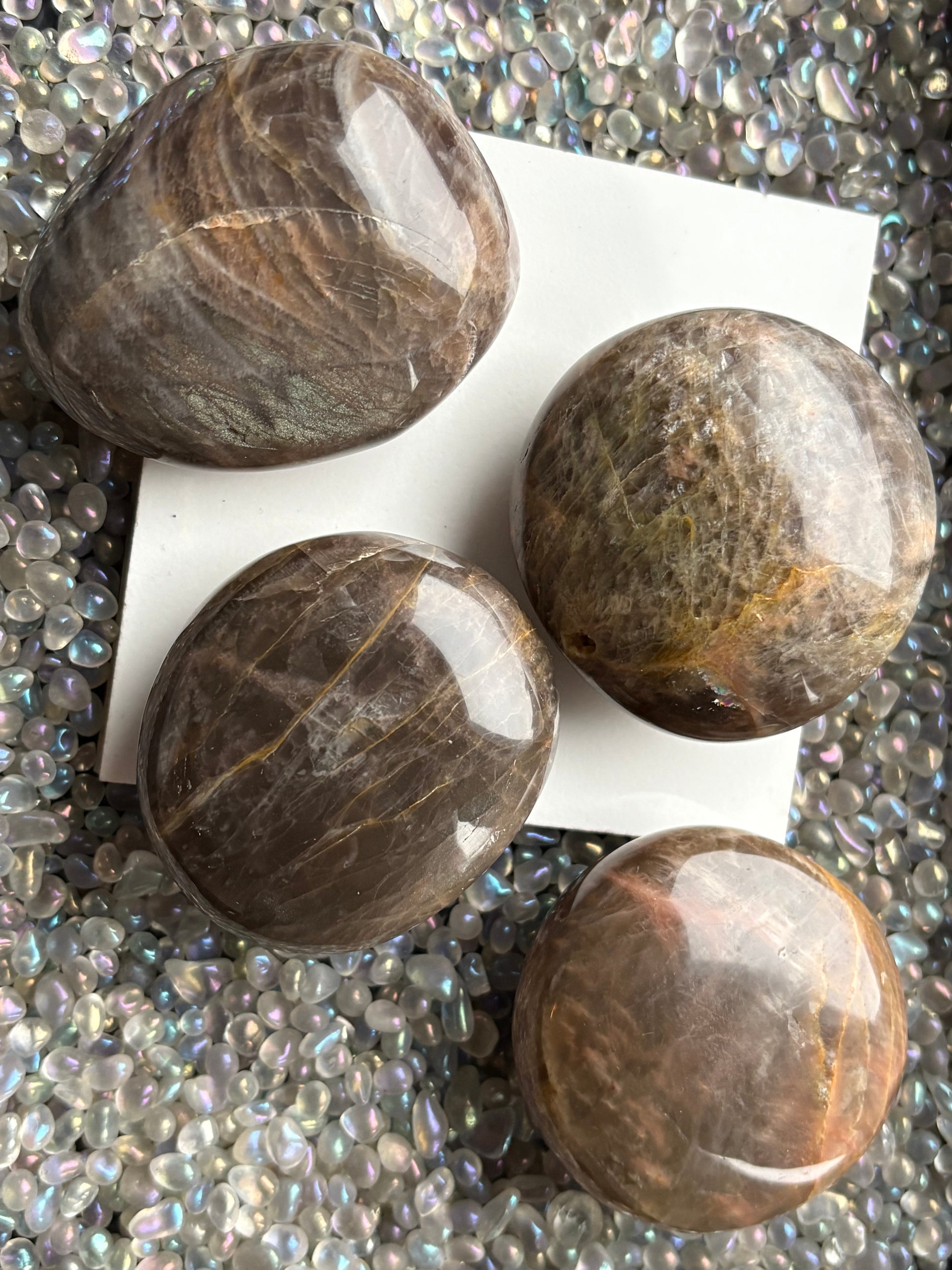 Moonstone is a stone of new beginnings, and the black ones invite us to explore our shadow side and the darker aspects of our life and psyche. Black Moonstone encourages us to sit with ourselves in non-judgement and accept “what is,” whether that be in the past or present.