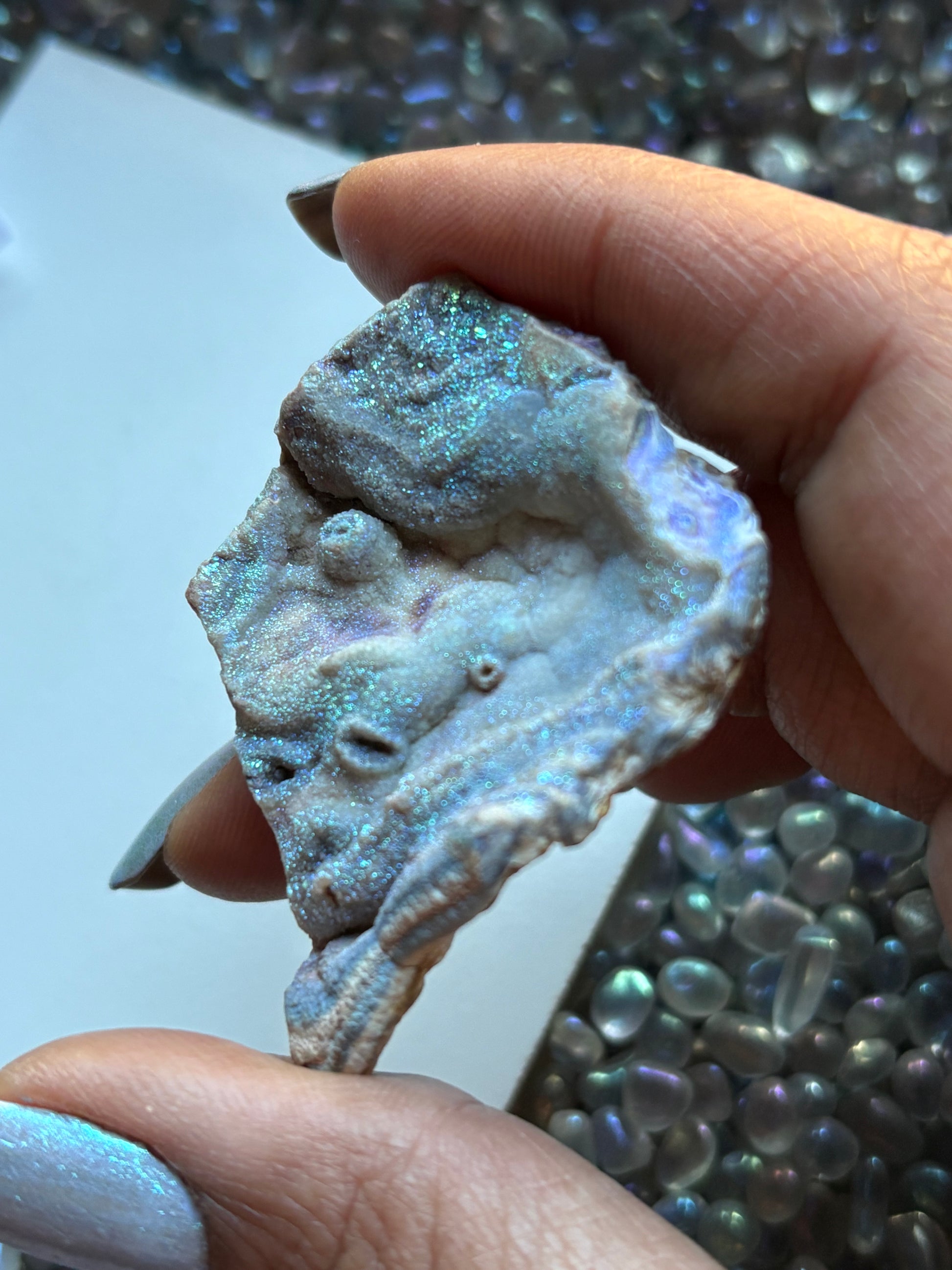 Stunning glittering hard to find Aura coated Chalcedony druzy