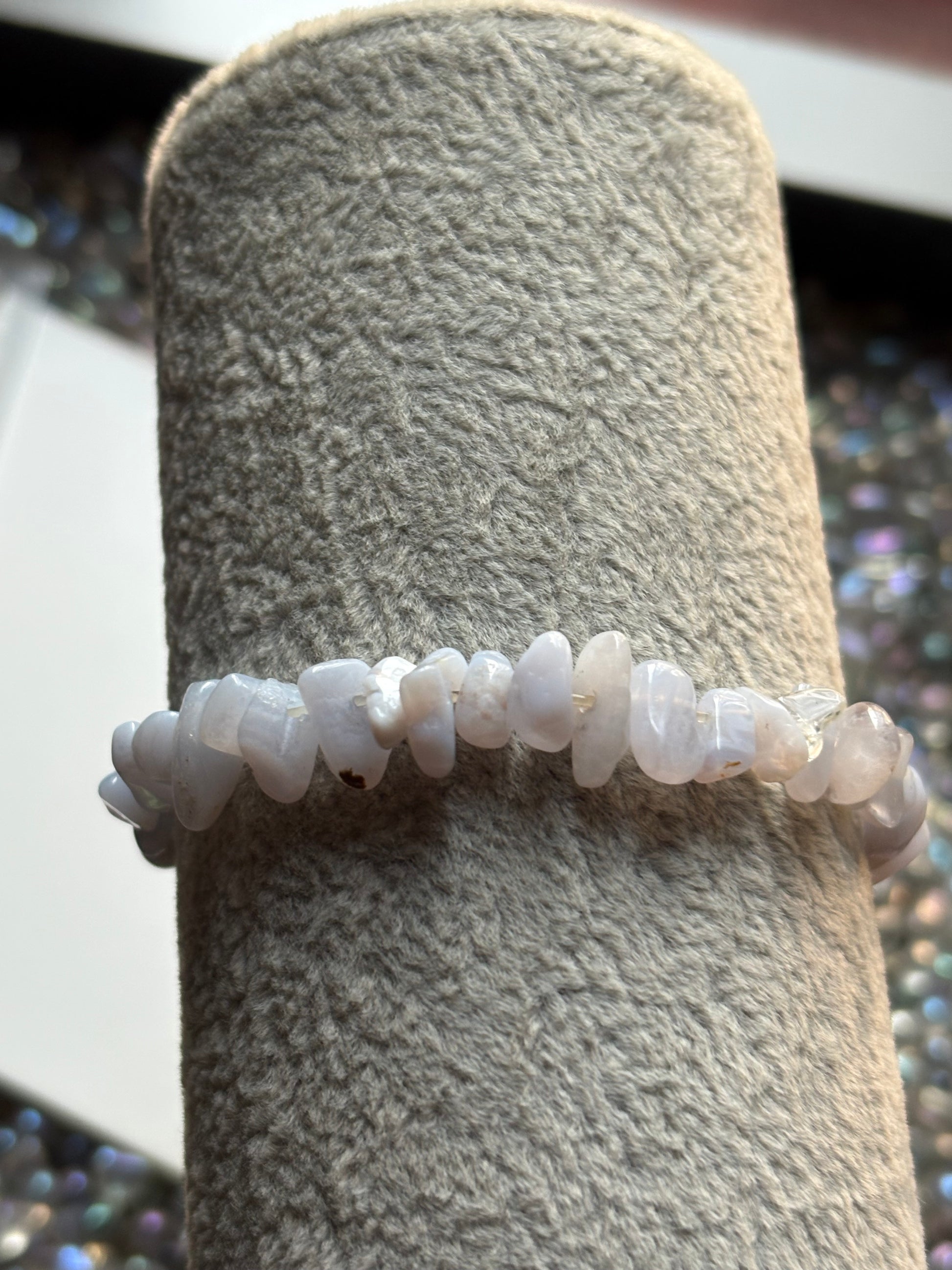 Blue Lace Agate Rough Crystal Gemstone Stretch Bracelet