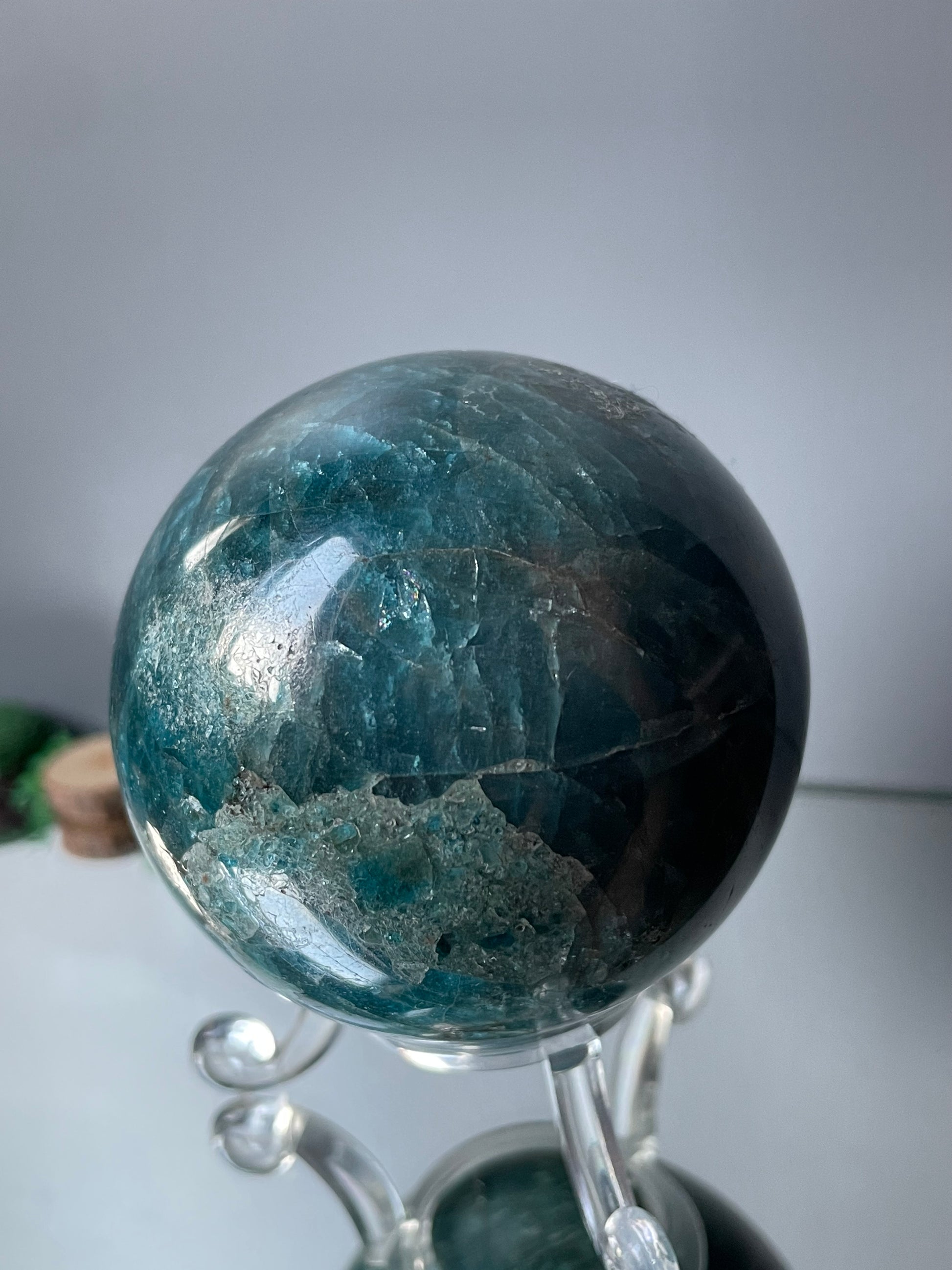 Blue Neon Apatite Asterism UV Gemstone Crystal Sphere (2)