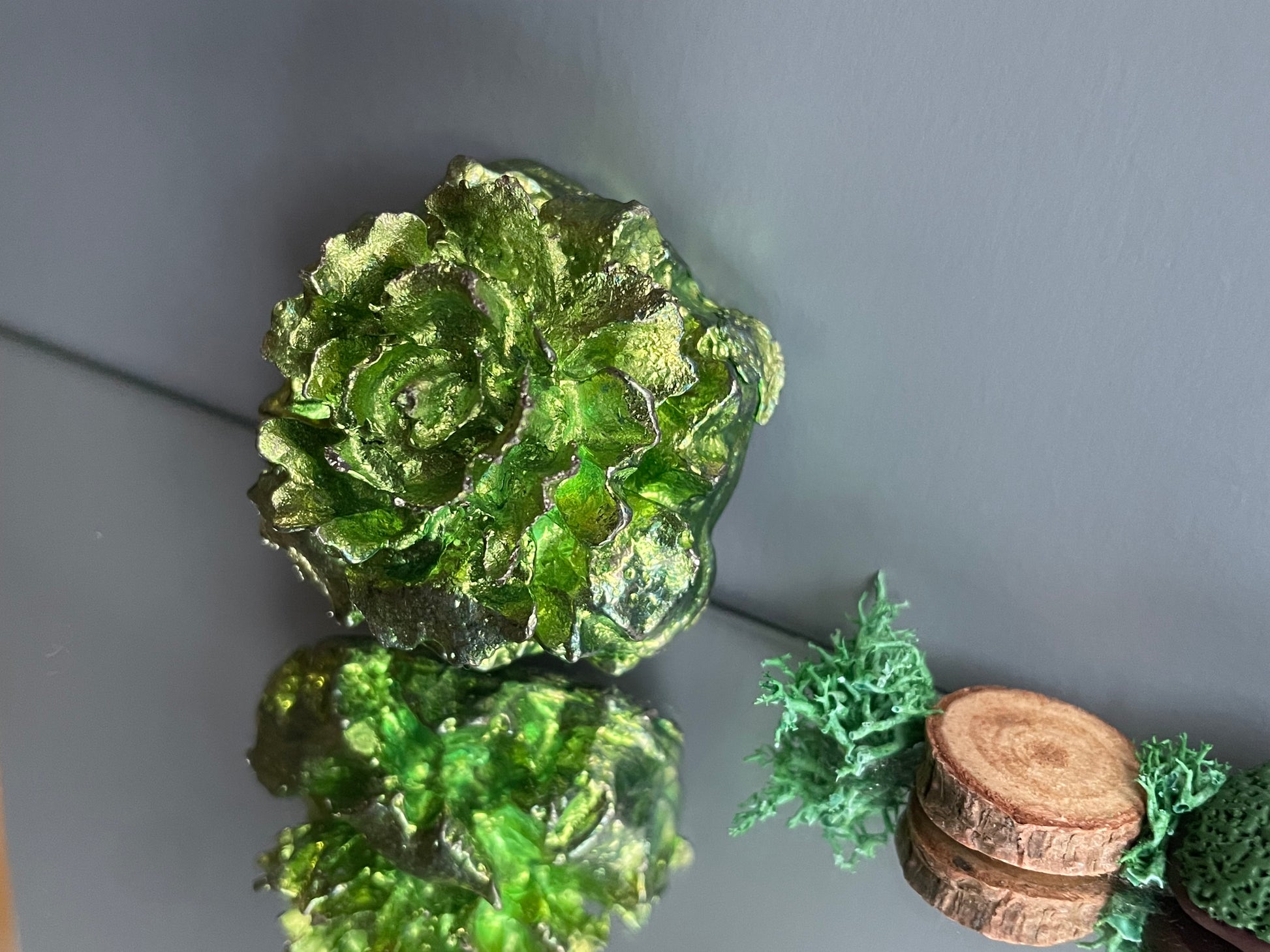 Green Bismuth Crystal Small Rose Flower Metal Art Sculpture