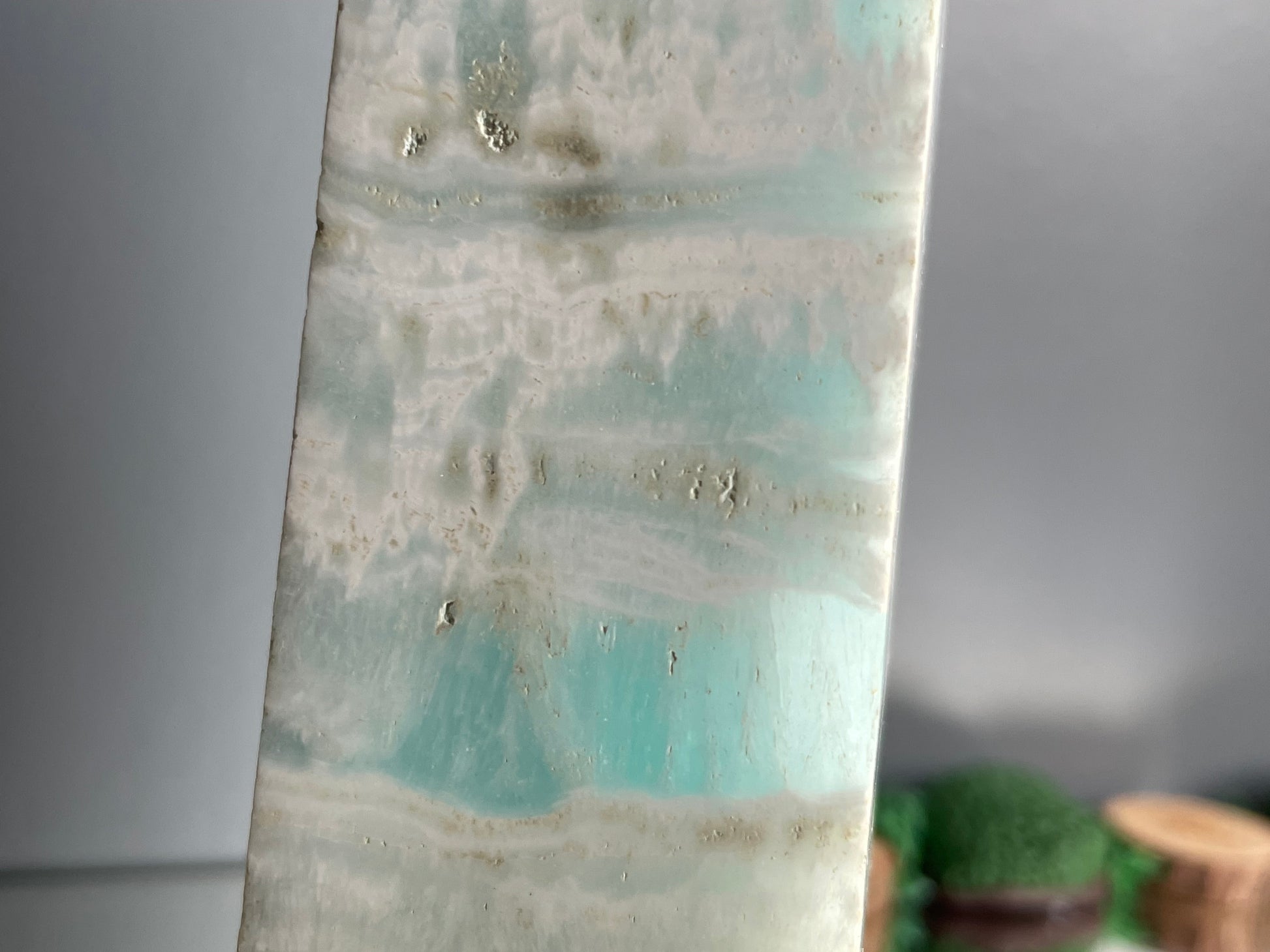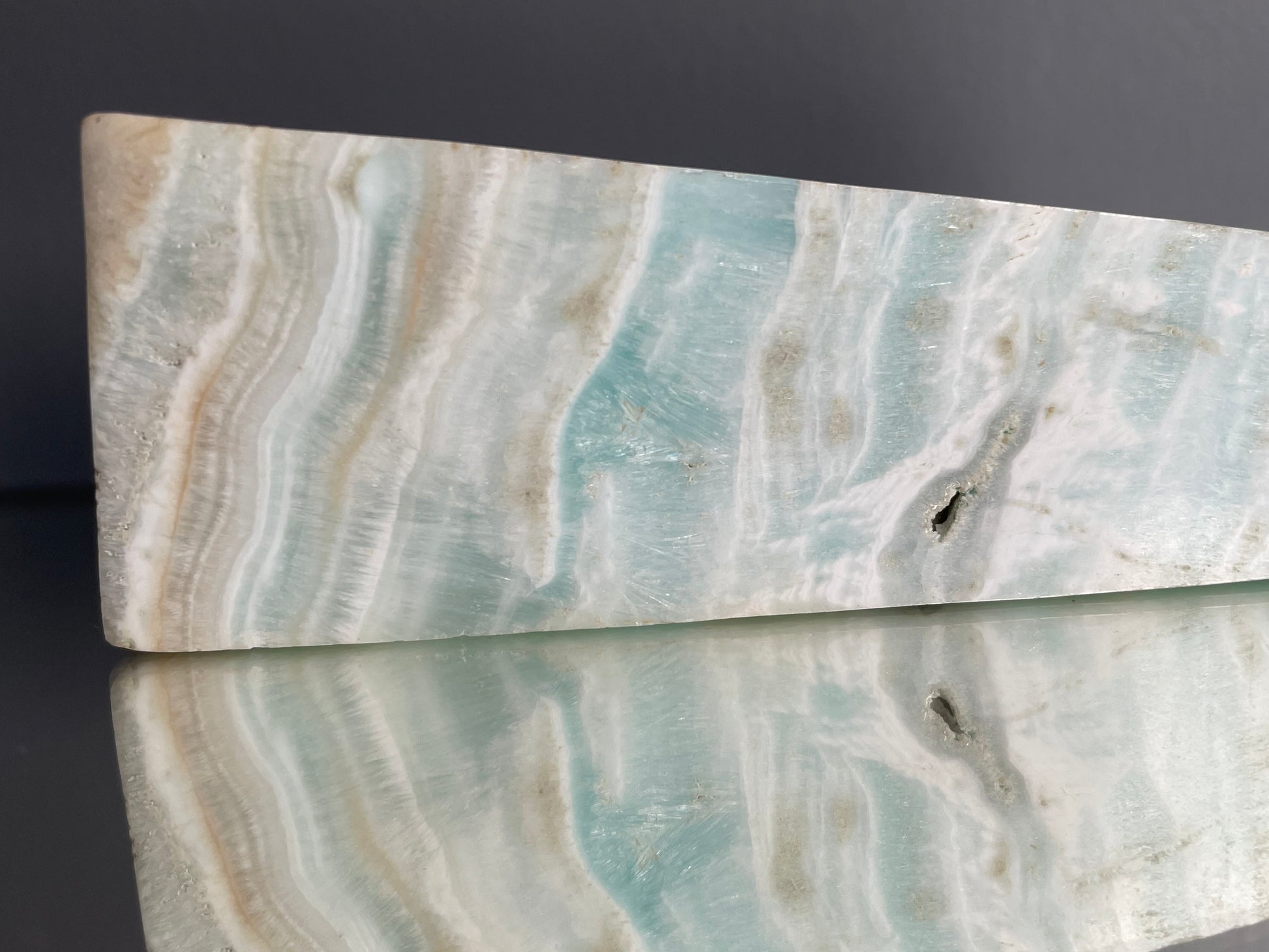 Caribbean Calcite was only just discovered in 2019 in Pakistan, so far this is the only known source of this rare combination of ocean Blue Calcite together with white and light brown Aragonite.