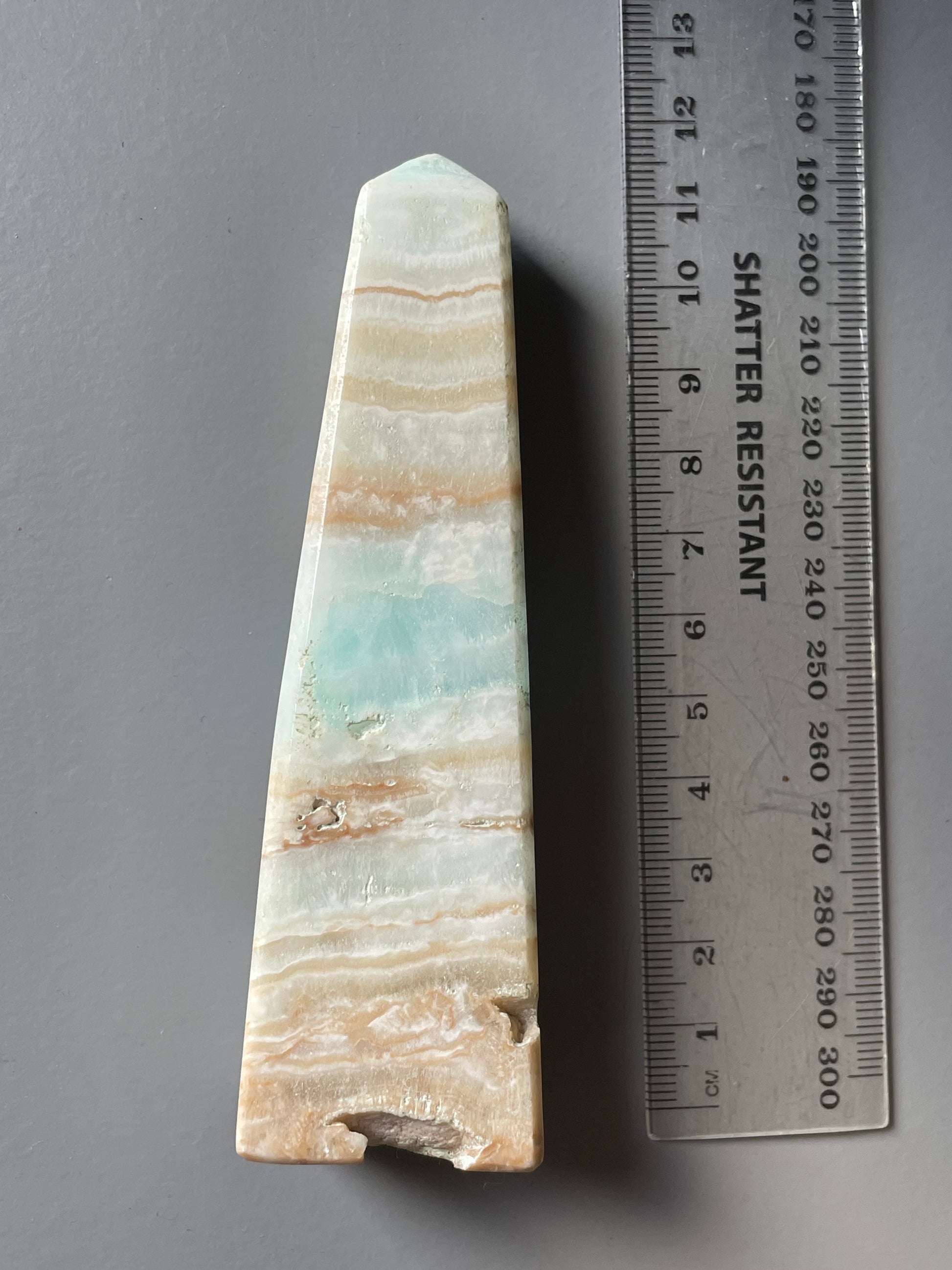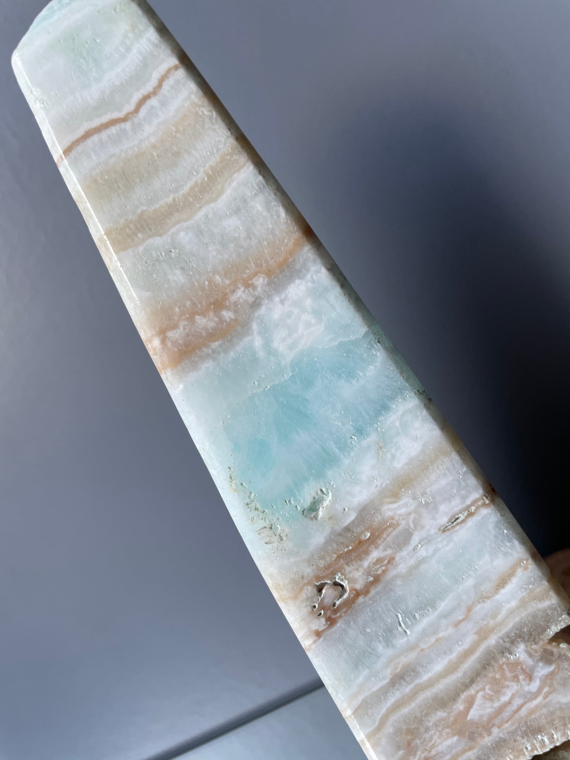 Caribbean Calcite was only just discovered in 2019 in Pakistan, so far this is the only known source of this rare combination of ocean Blue Calcite together with white and light brown Aragonite.