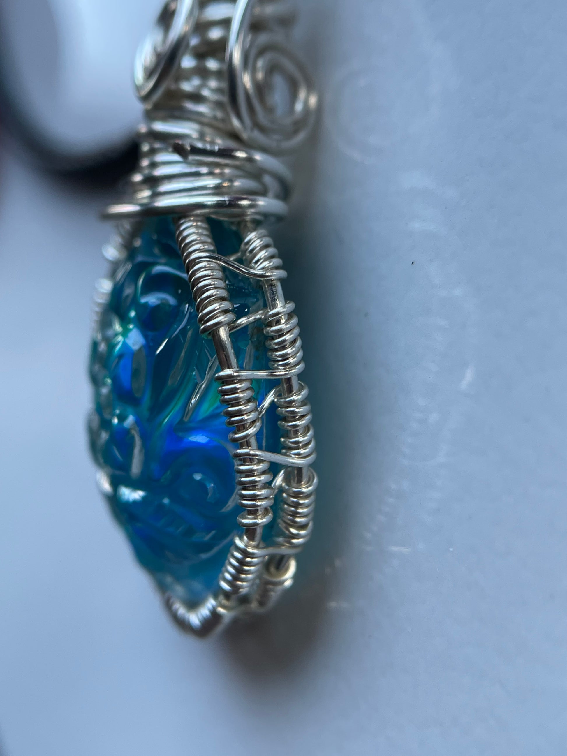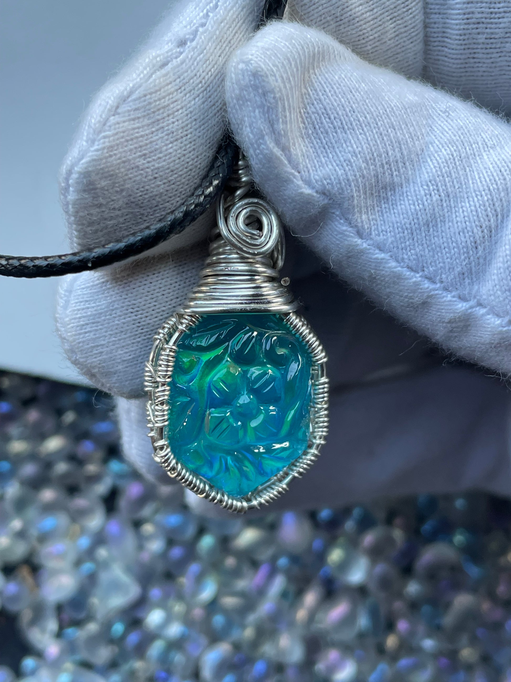 Carved Aurora Opal Doublet Crystal Gemstone - Wire Wrapped Necklace
