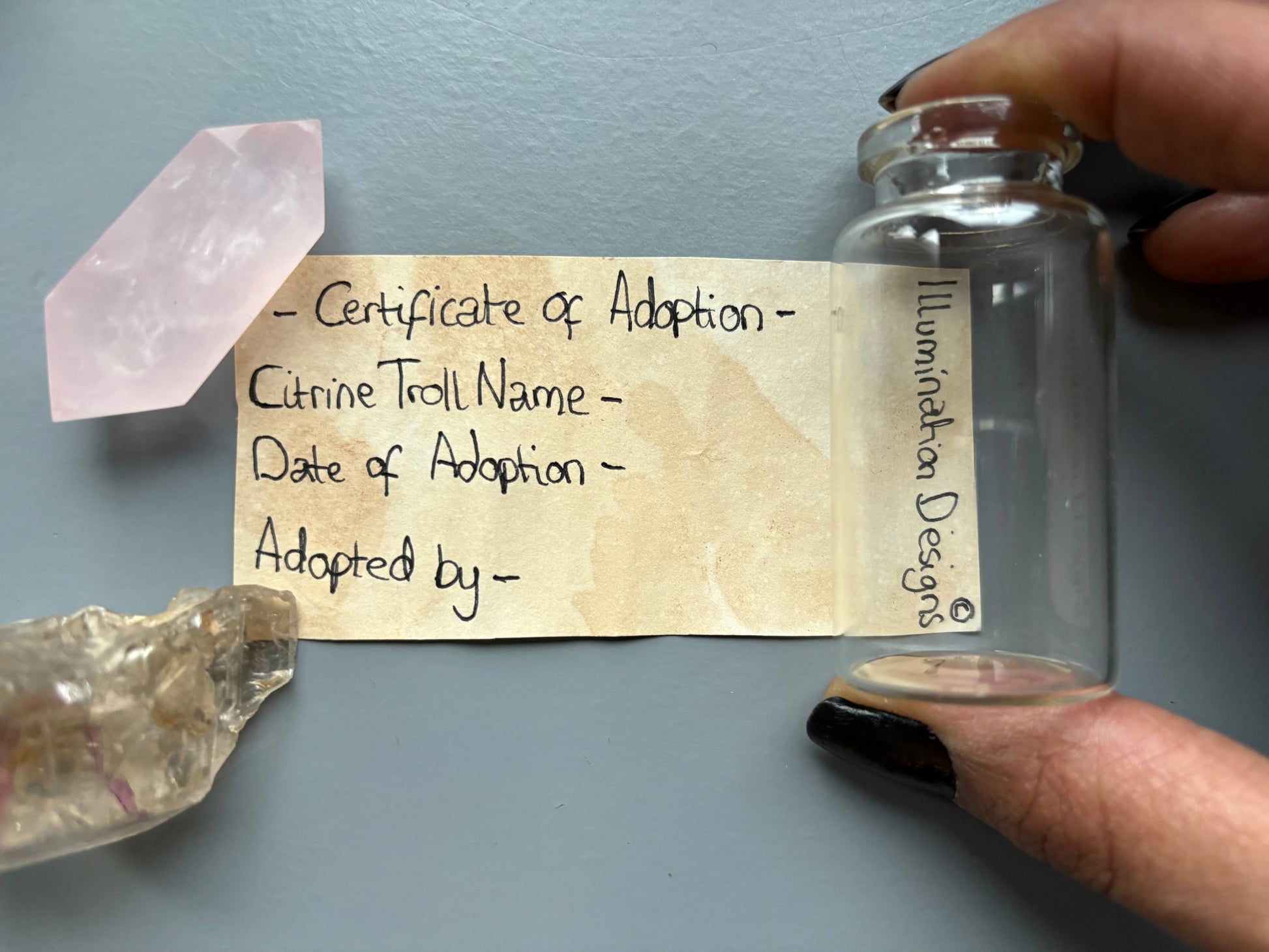 •One mini troll - rainbow filled citrine with fluffy green Norwegian moss hair detail on a log slice