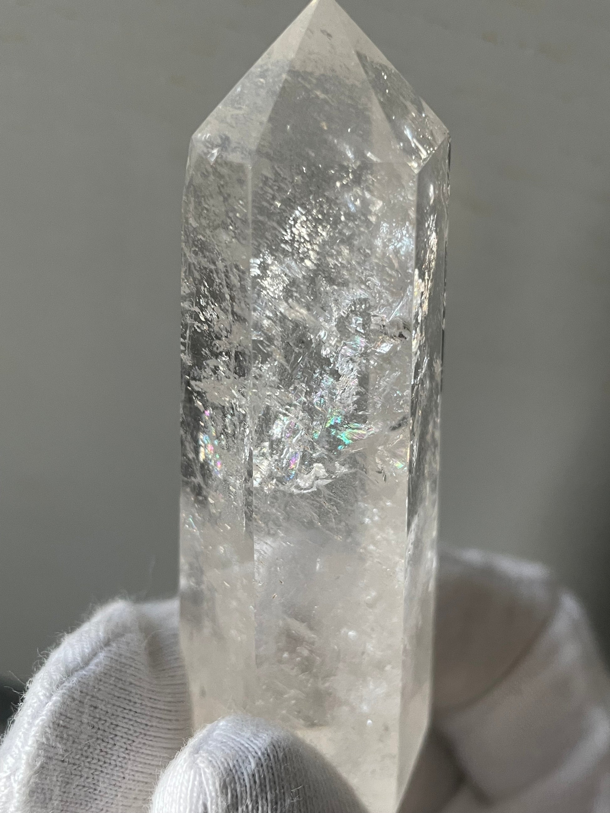 There are 3 different clarities of quartz towers available from 1/3 - 1 being the clearer 3 being cloudy.