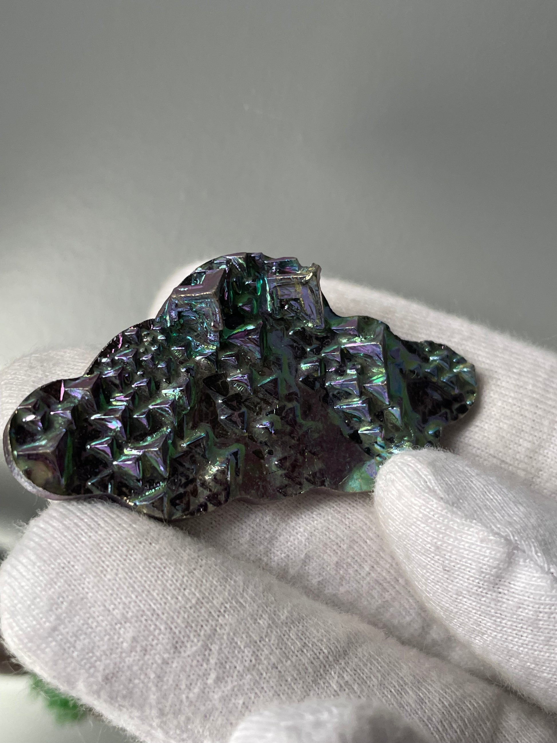 This is a beautiful purple blue piece of BISMUTH crystal shaped in a cloud