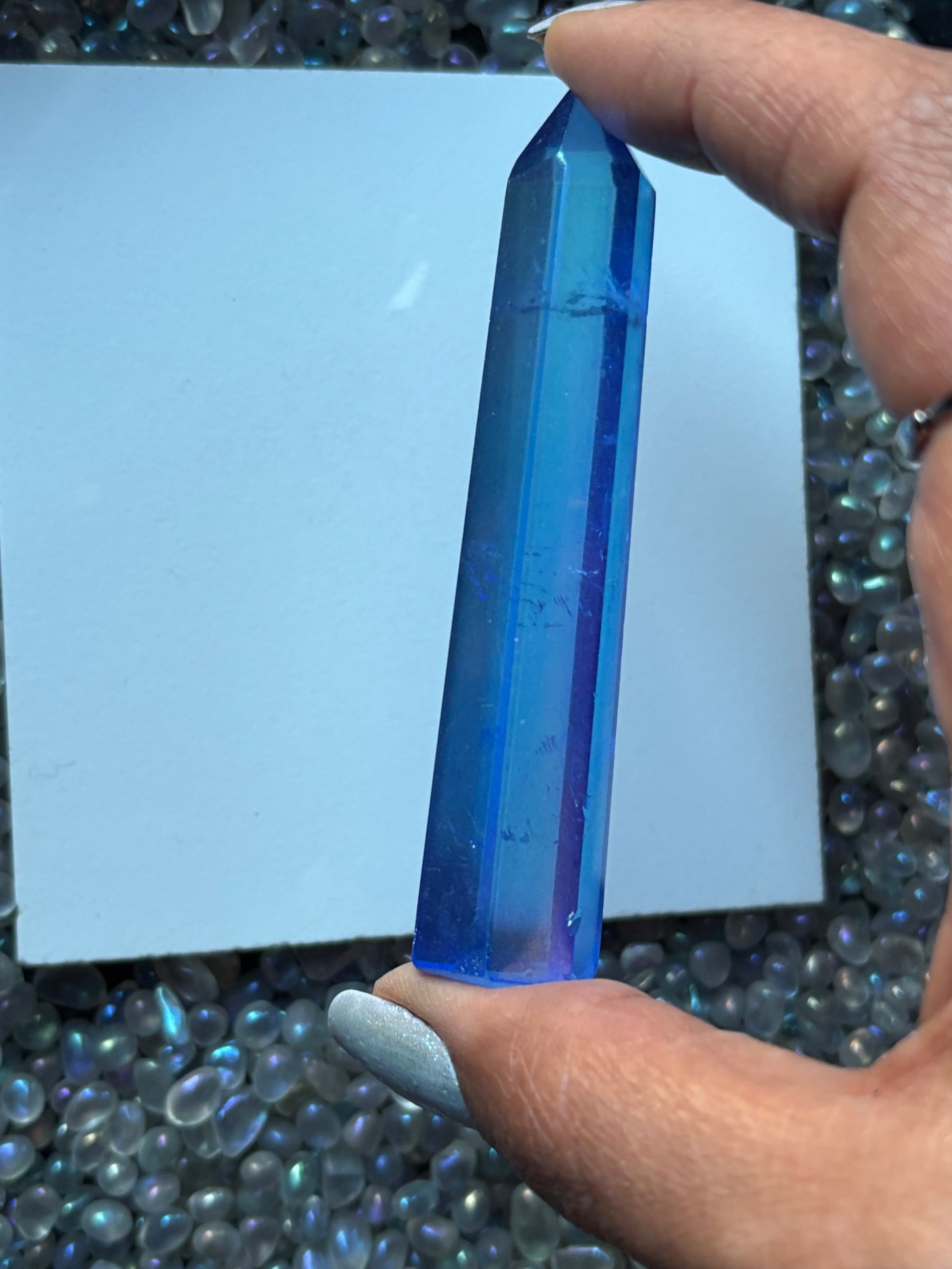 Blue Aura Quartz Crystal Gemstone Tower Point (3)