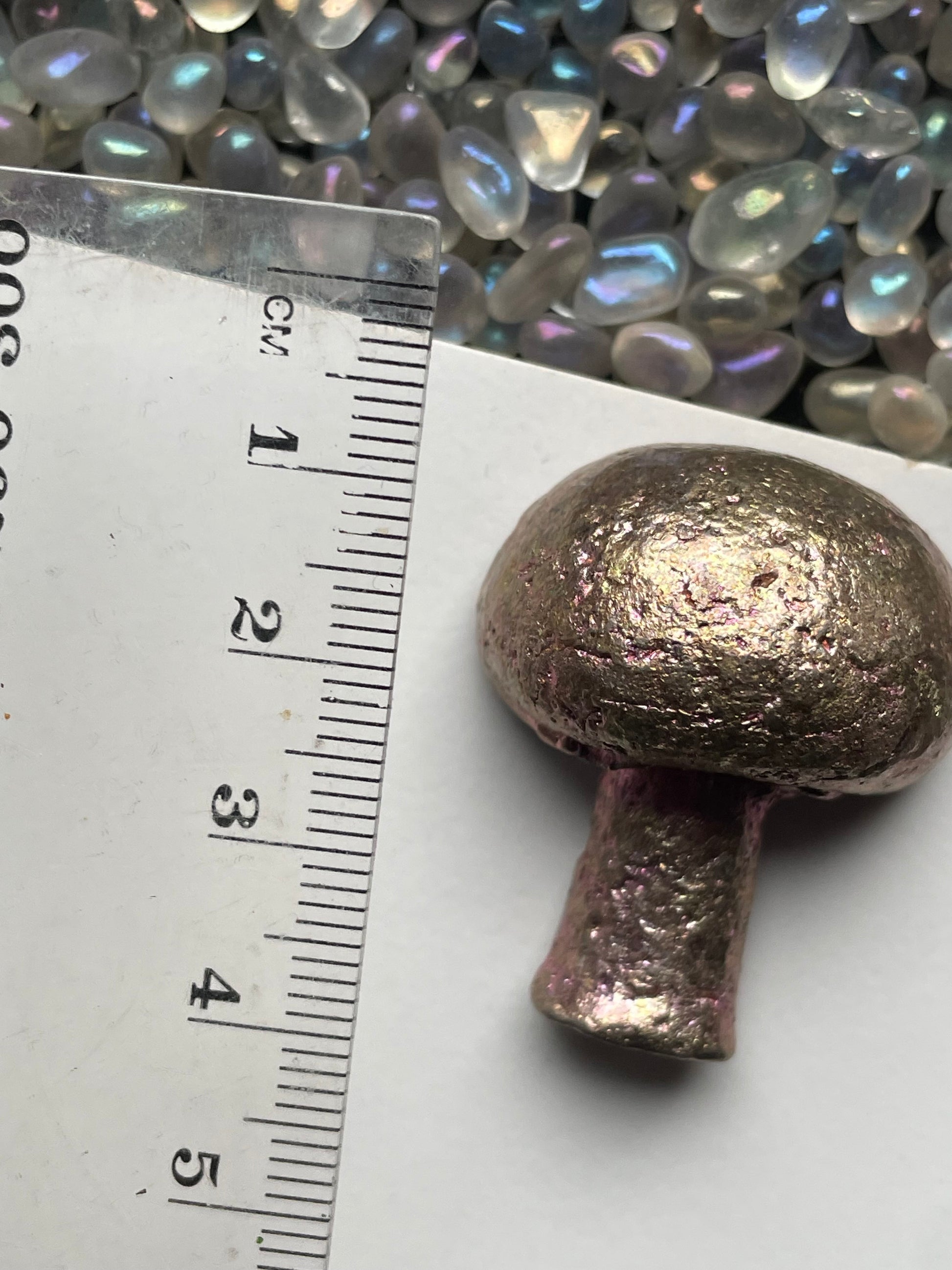 Silver Pink Bismuth Crystal Mushroom Metal Art Sculpture