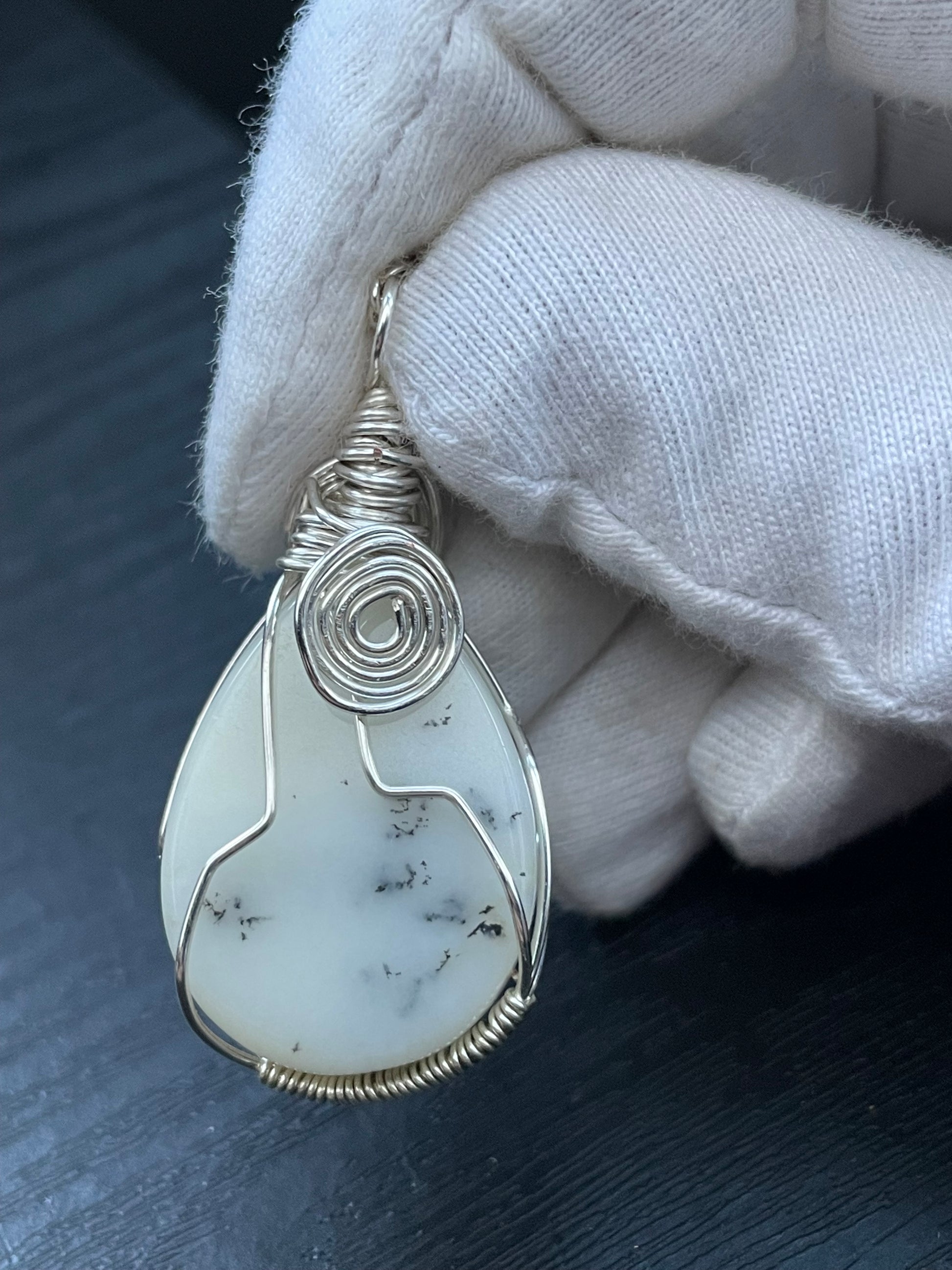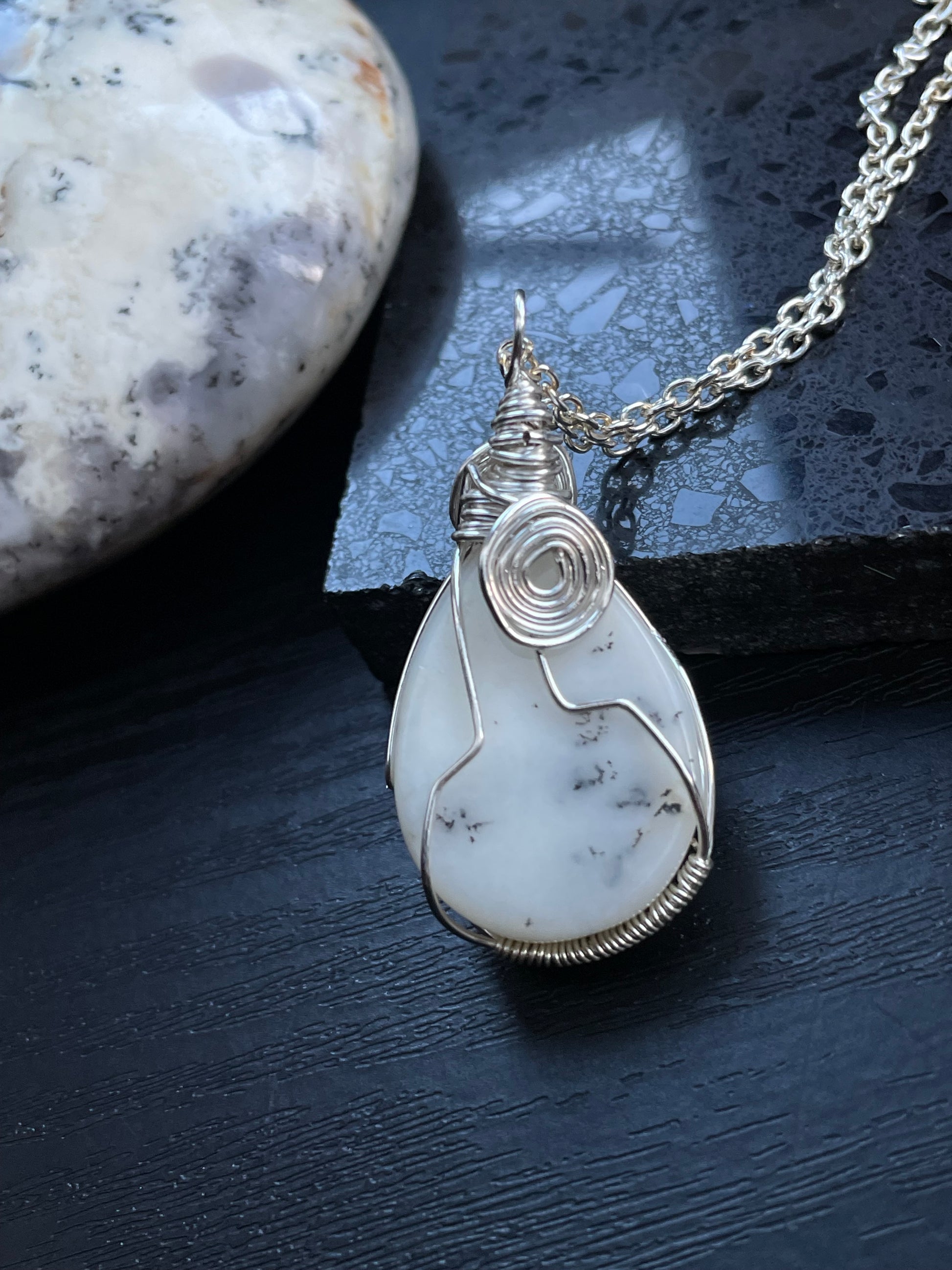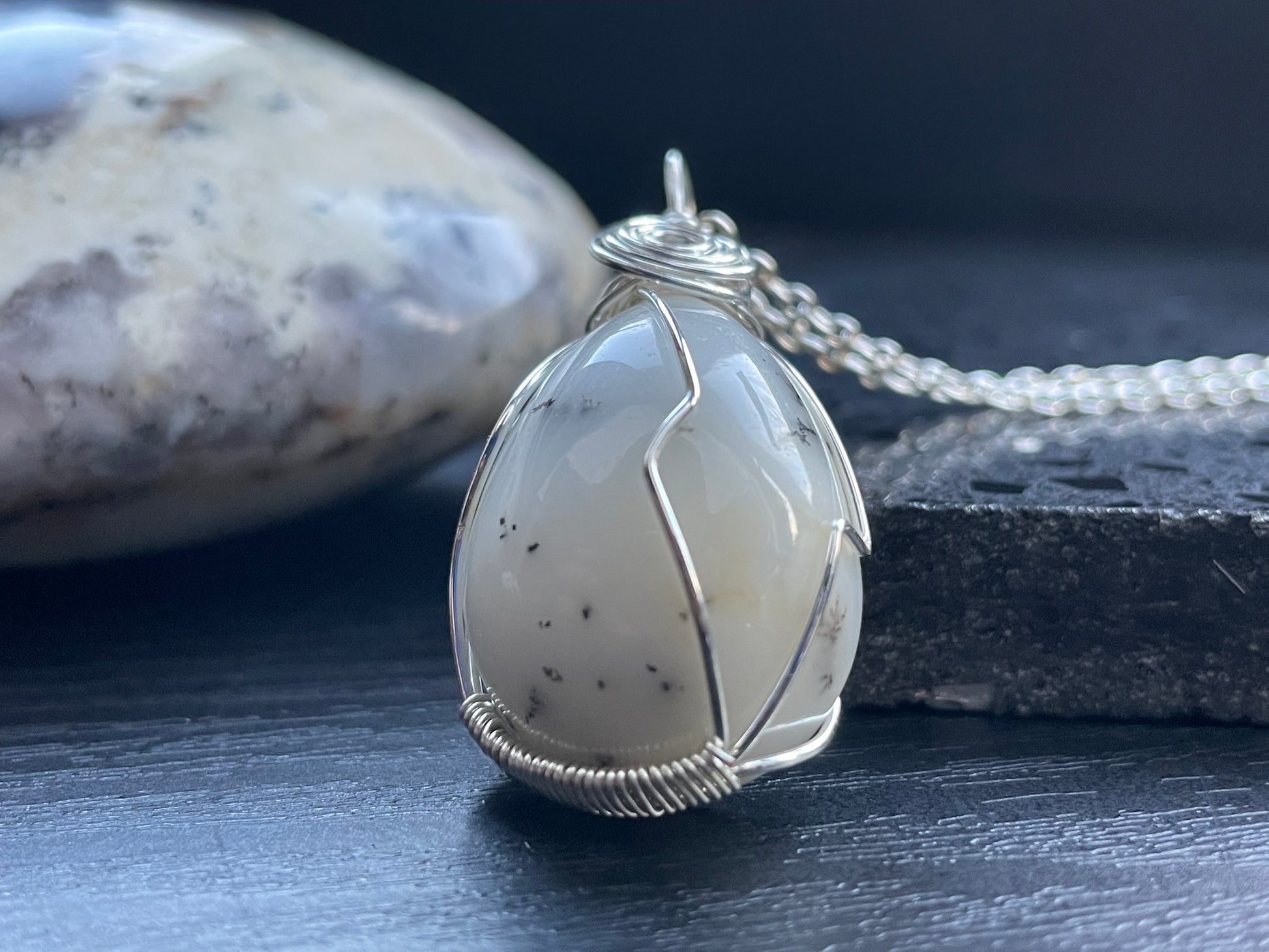 Dendritic Opal Agate Crystal Gemstone Wire Wrapped Necklace (2)