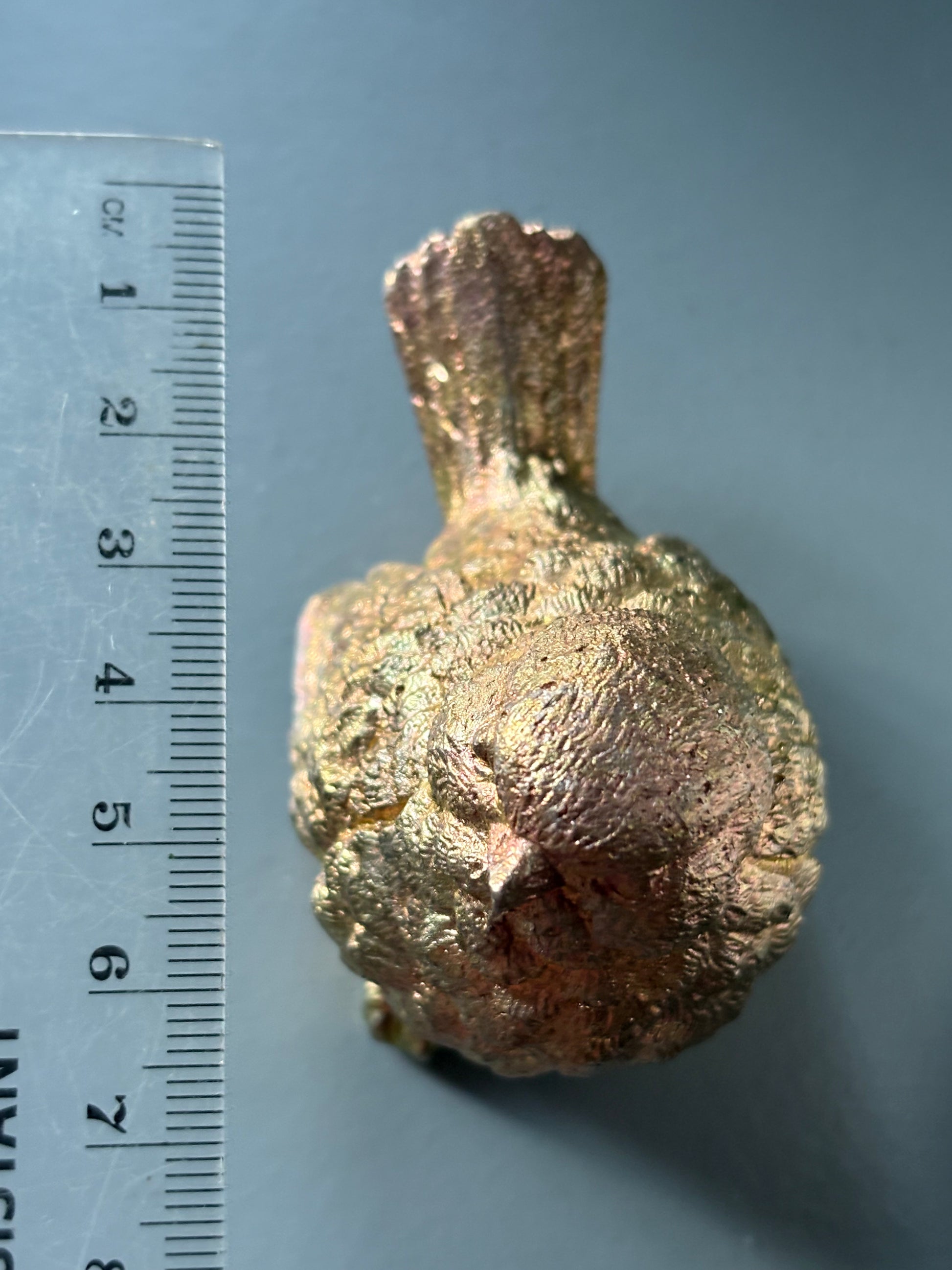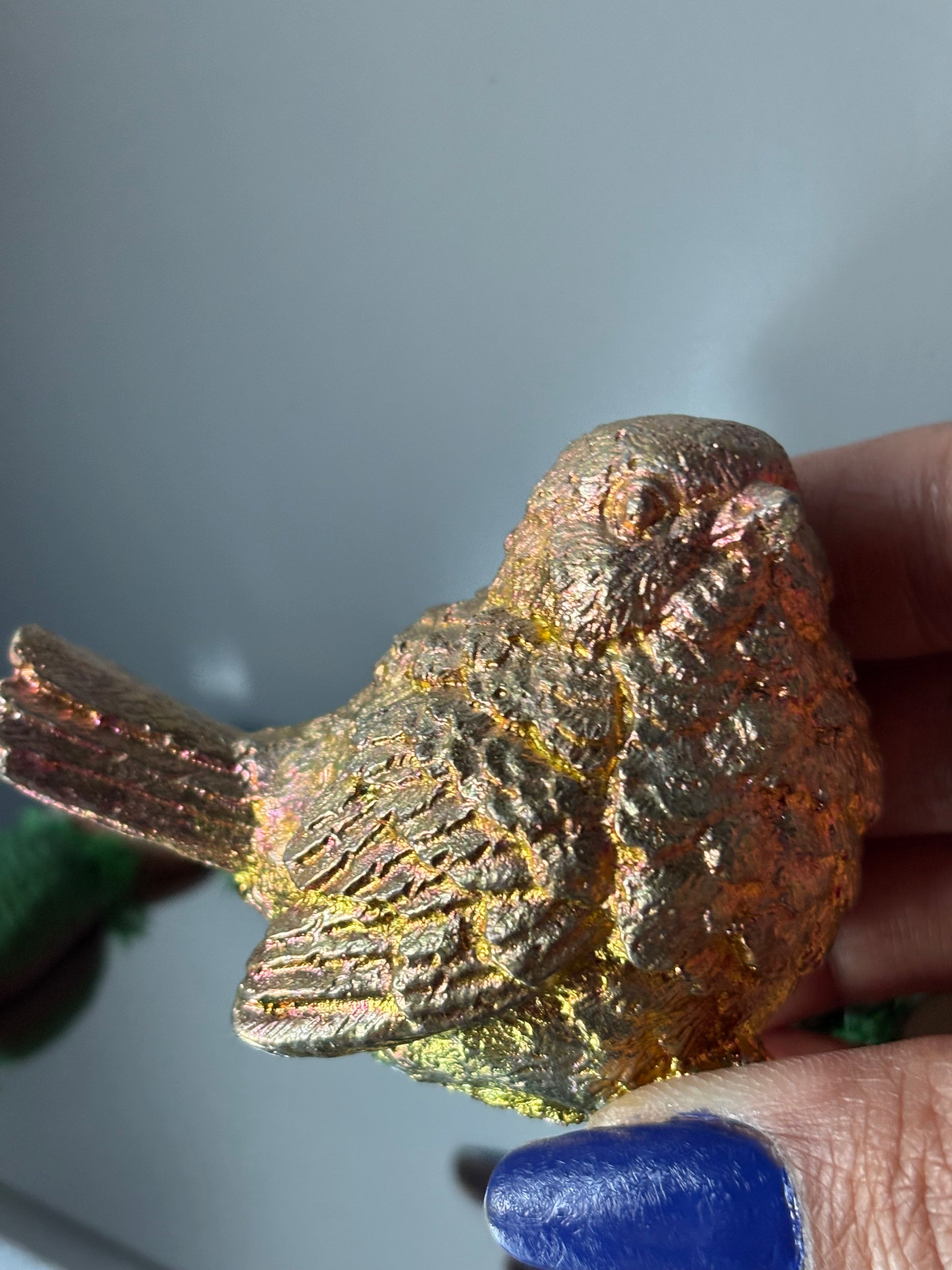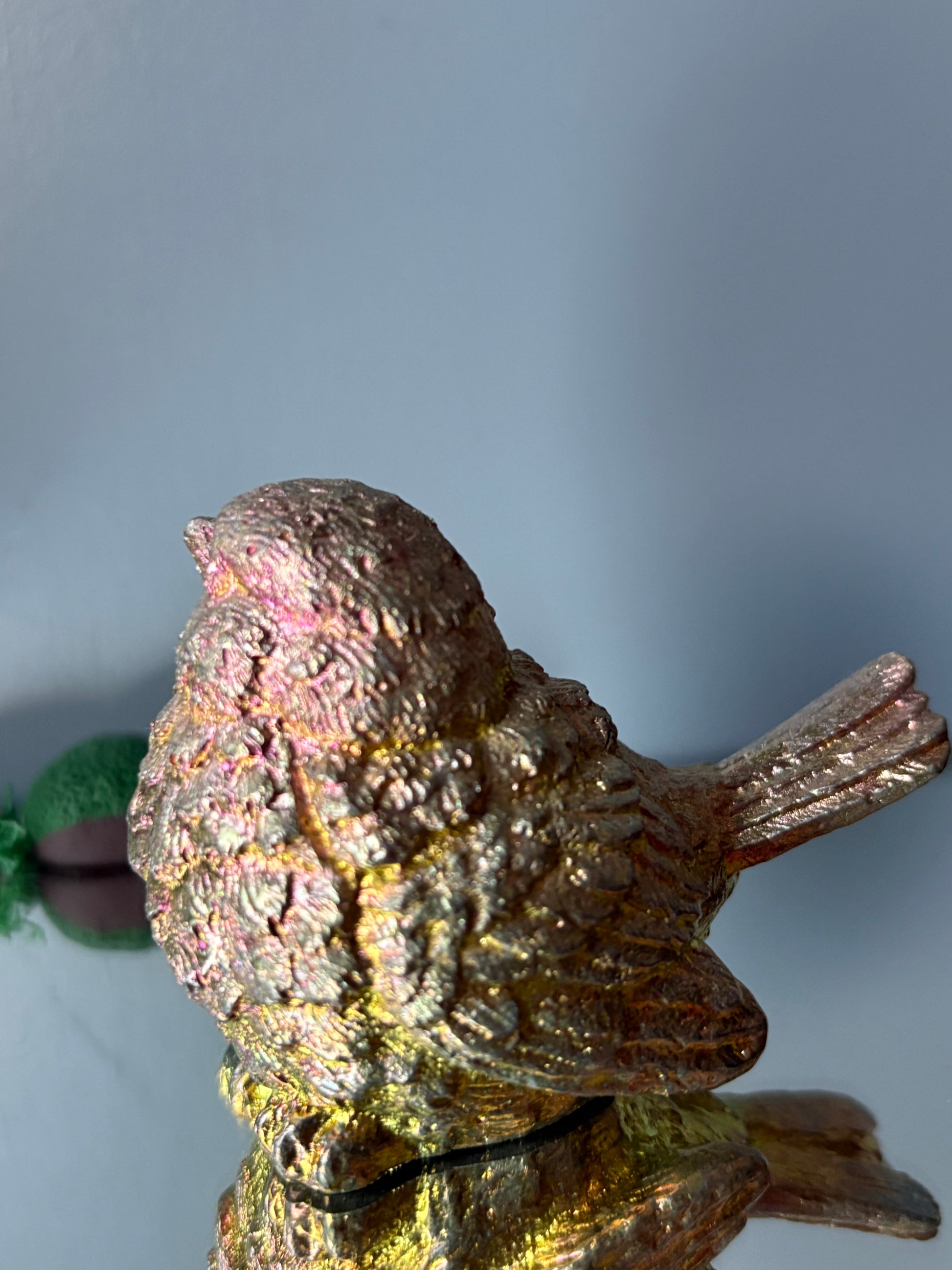 Gold Peach Bismuth Crystal Wren Song Bird Metal Art Sculpture