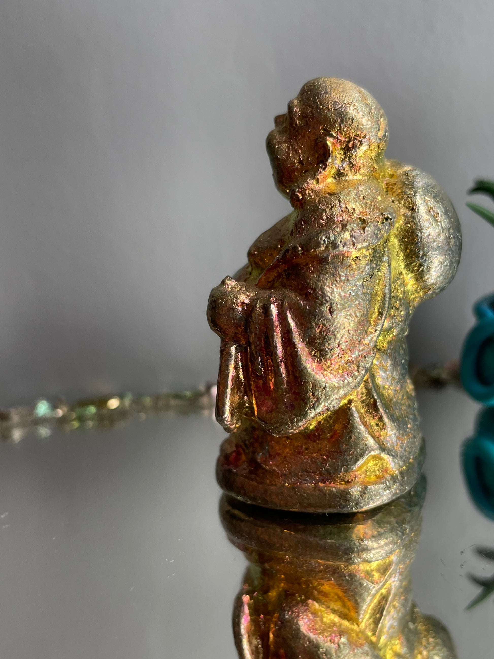 Stunning Travelling Buddha carving made out of single coloured bismuth