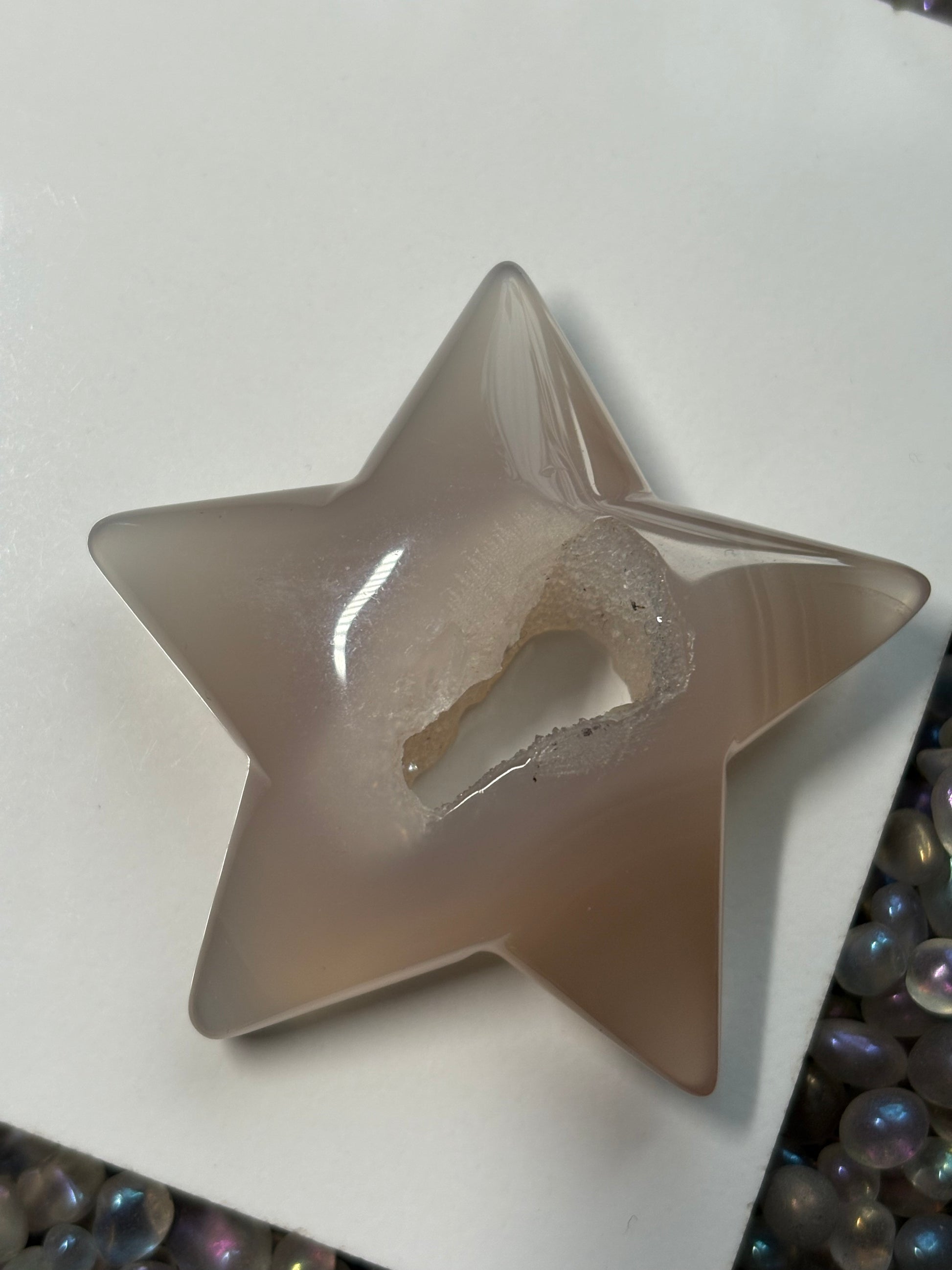 Stunning glittering druzy inside a grey agate crystal star shaped