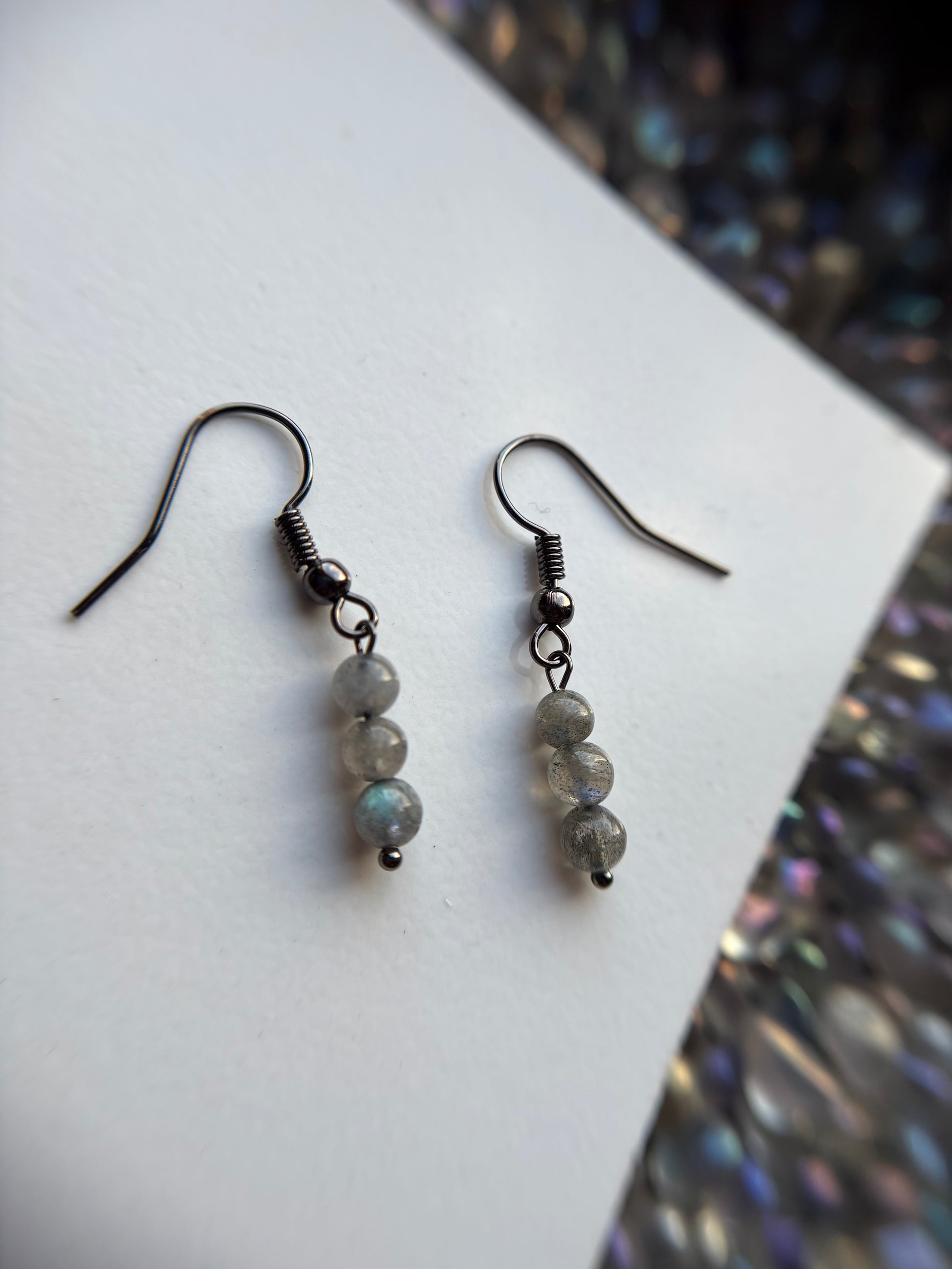 Labradorite Crystal Gemstone Black Metal Dainty Drop Earrings