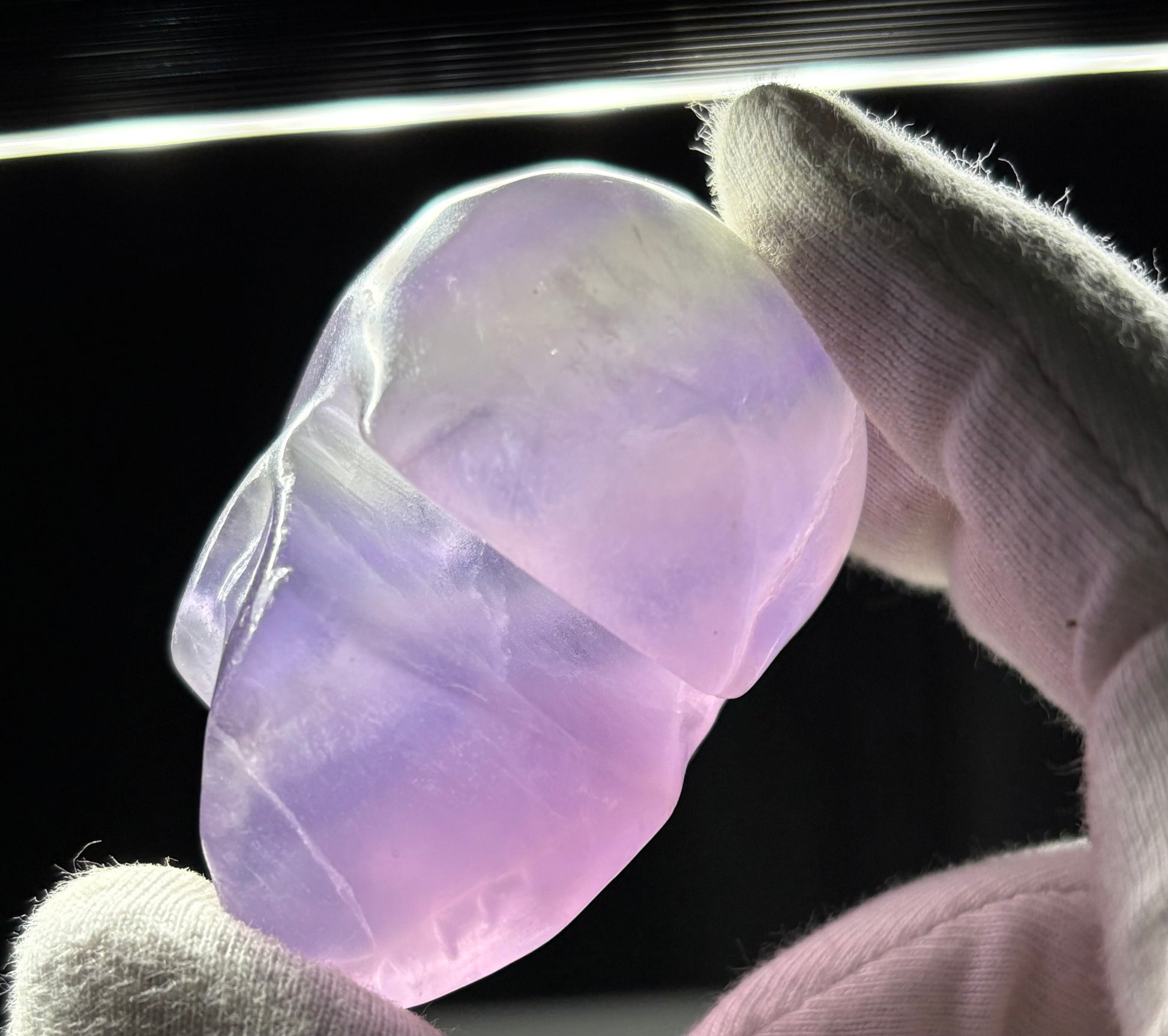 Stunning Yttrium Lavender fluorite Gemstone Crystal skull carving