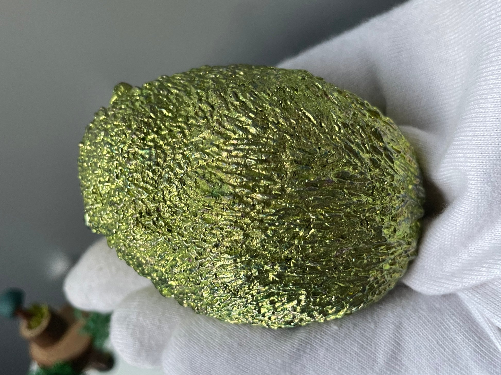 Green Bismuth Crystal Large Hedgehog Metal Art Sculpture