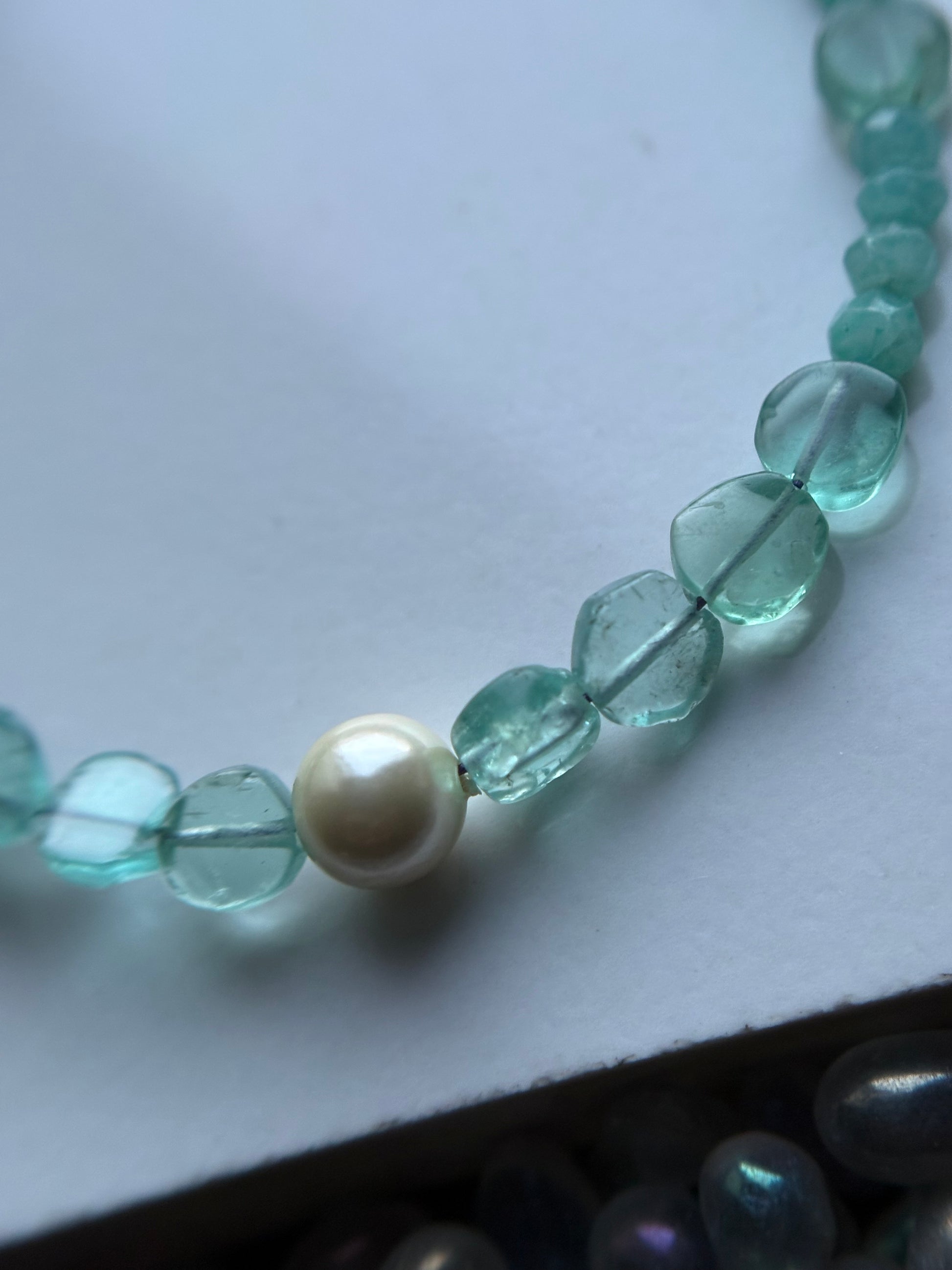 Pearl Aqua Chalcedony Apatite Crystal Gemstone Gold 925 Sterling Silver Bracelet
