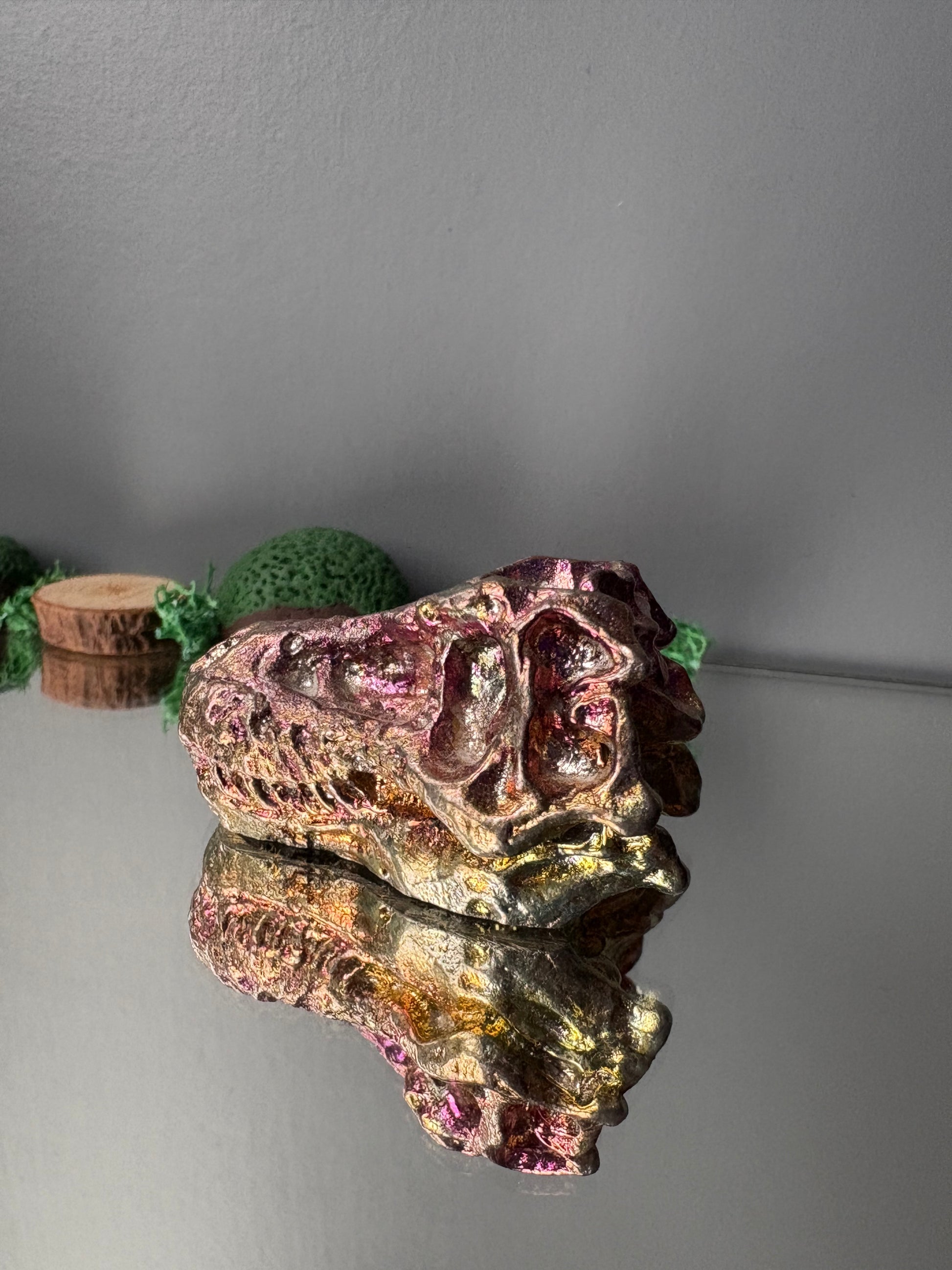 Pink Gold Bismuth Crystal Small Trex Skull Metal Art Sculpture