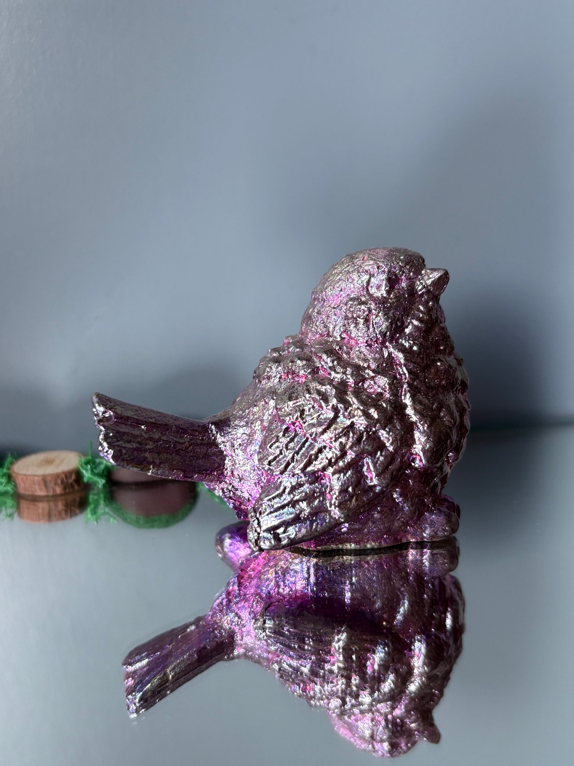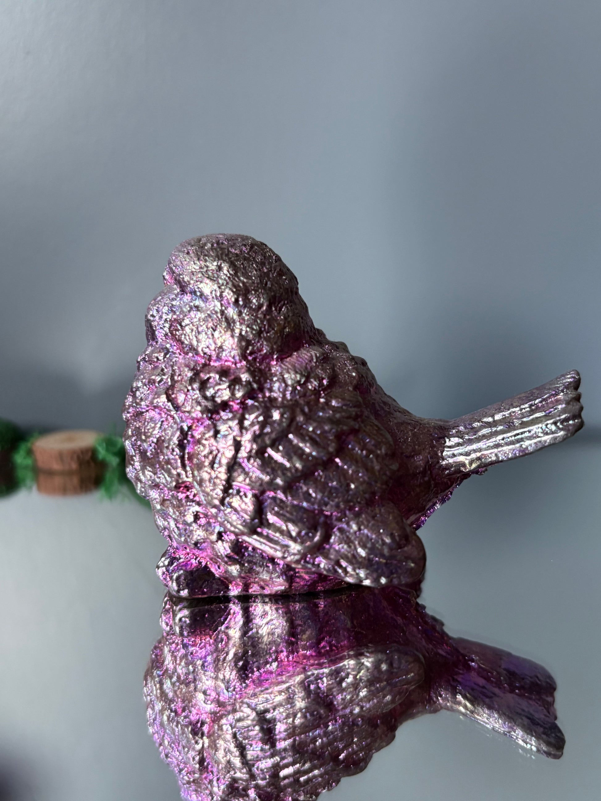 Pink Bismuth Crystal Wren Song Bird Metal Art Sculpture (1)
