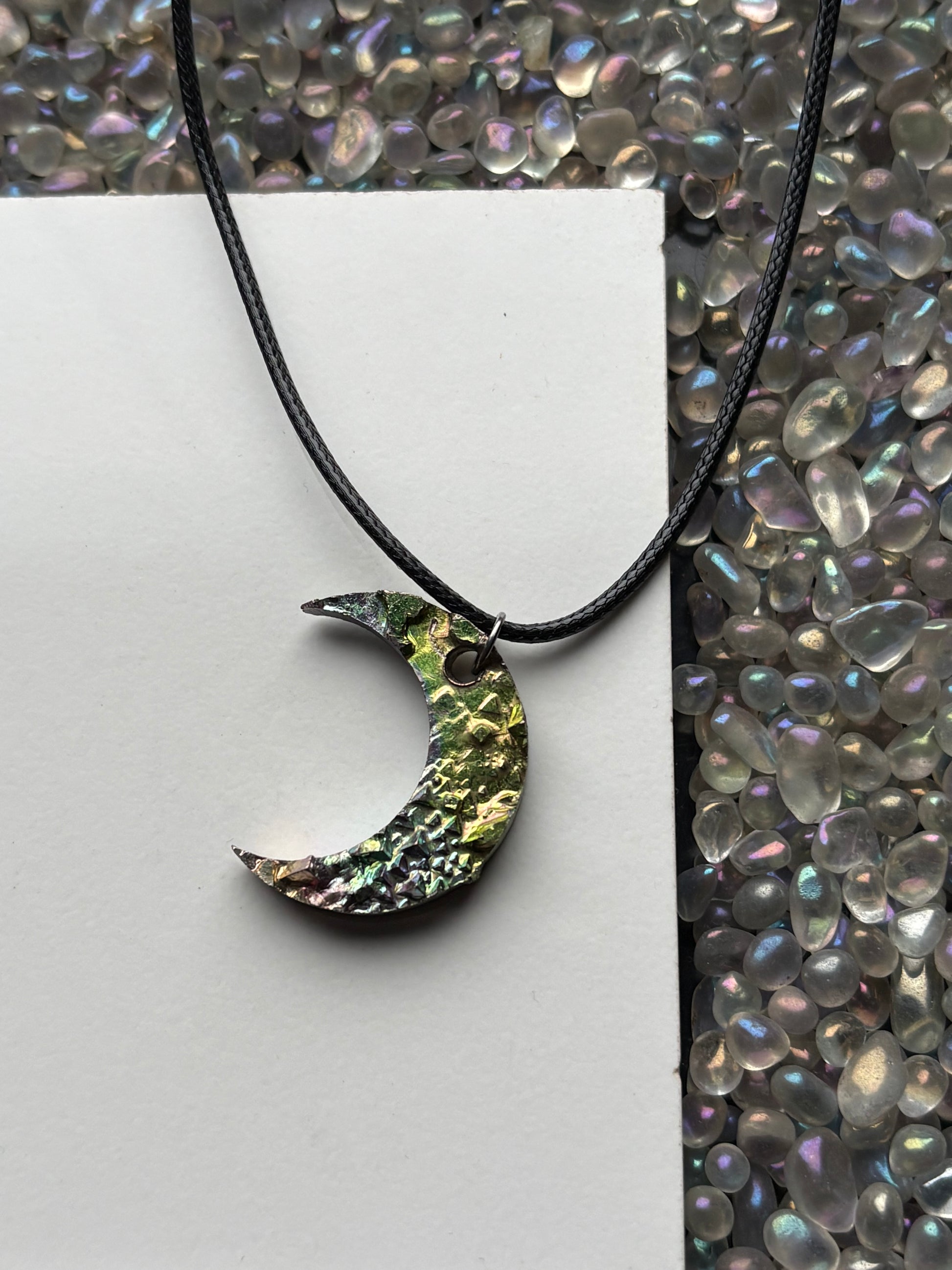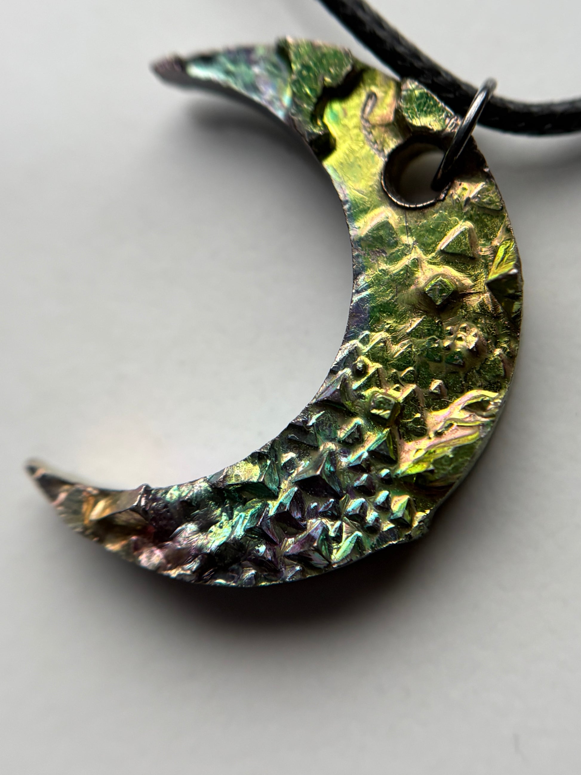 Pendant - moon shaped RAINBOW BISMUTH crystal