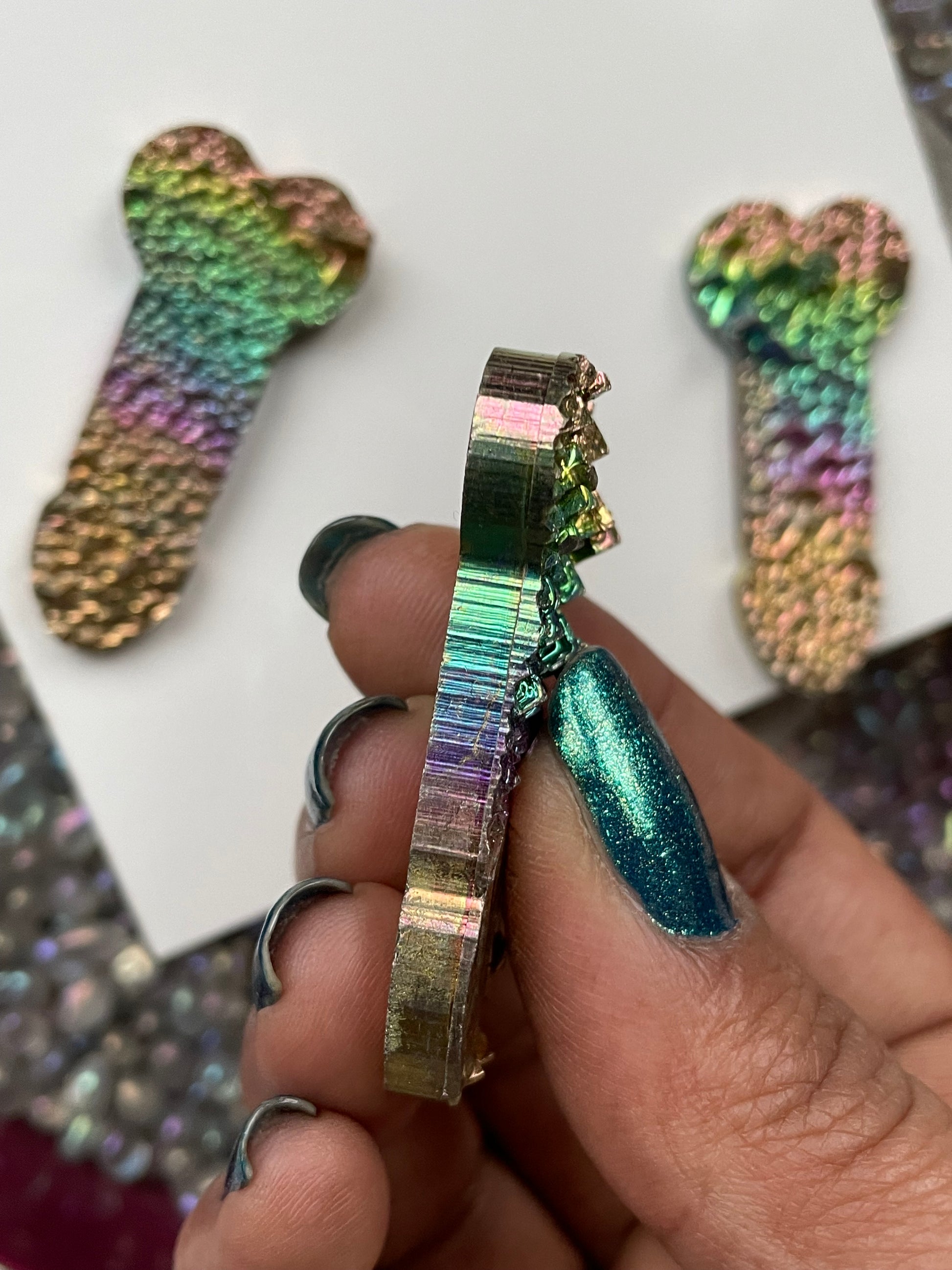 Rainbow Bismuth Crystal Penis Phallus Cut Out Metal Art