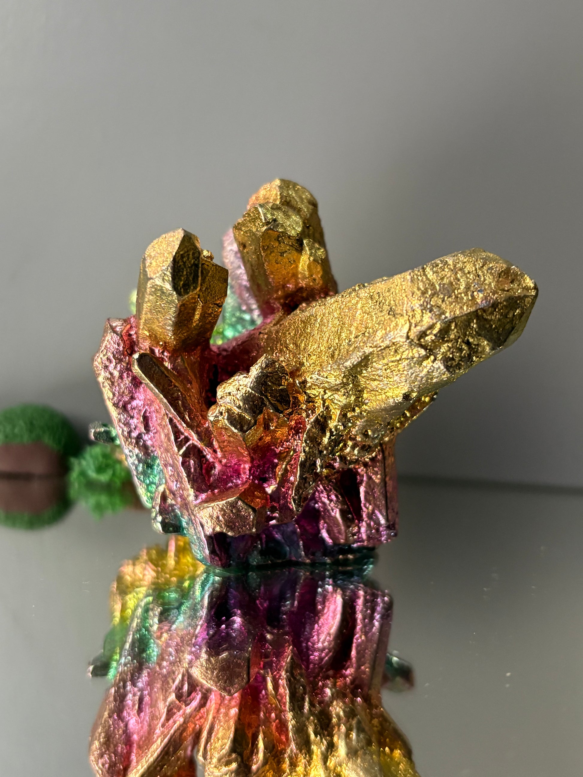 Stunning Quartz cluster carving made out of rainbow Bismuth
