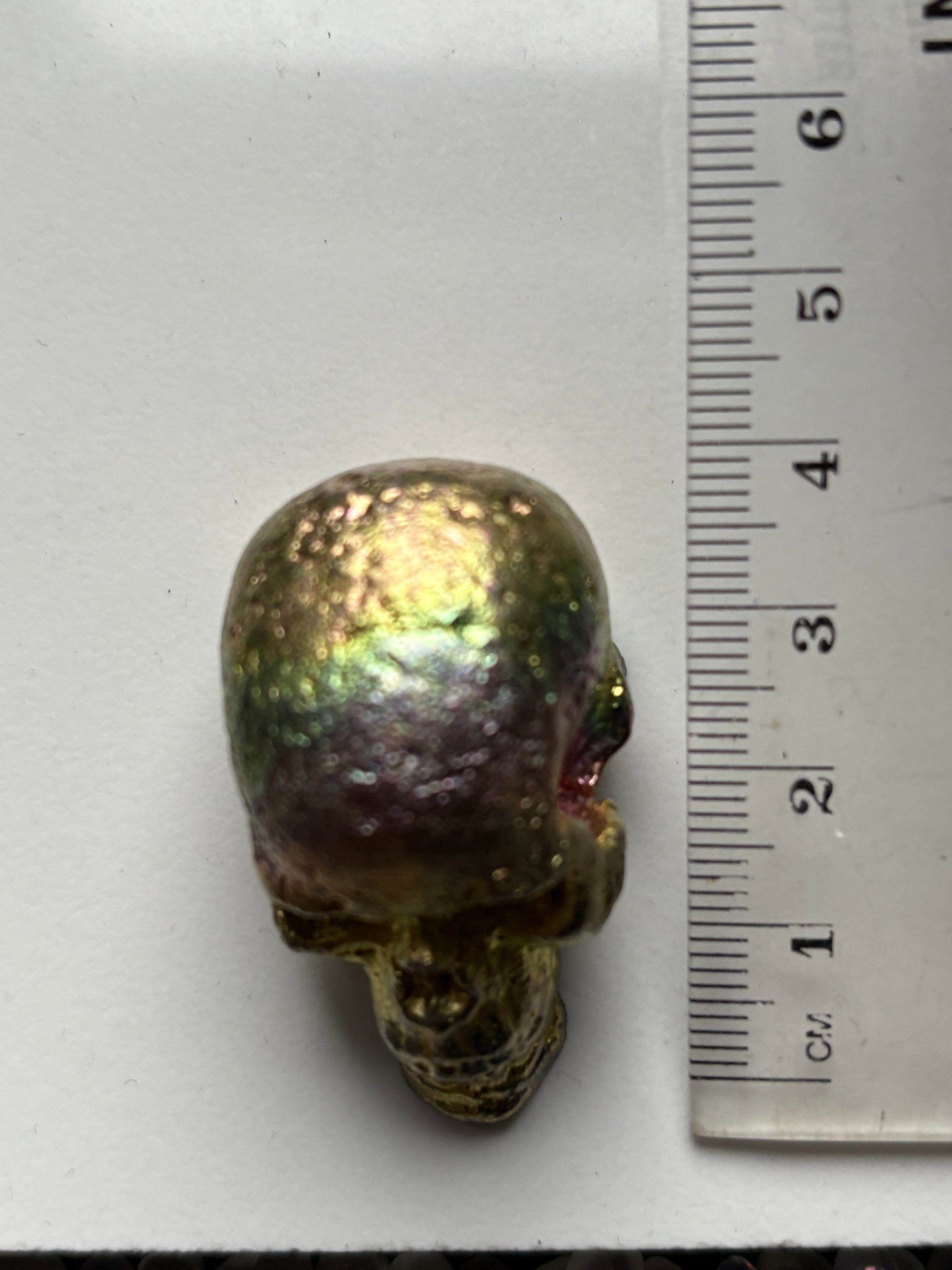 Rainbow Bismuth Crystal Skull Metal Sculpture Small