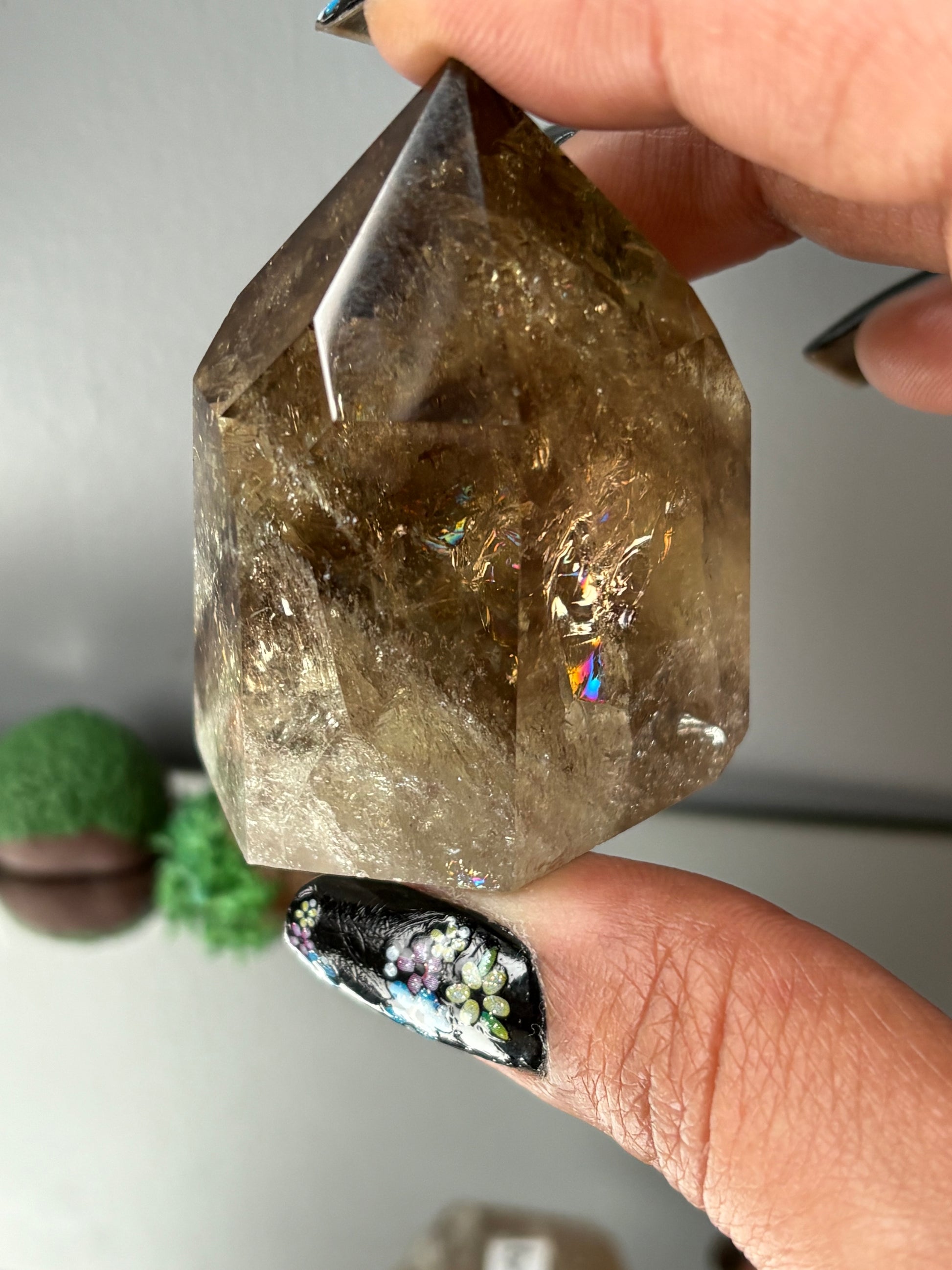 Rainbow Phantom Smoky Citrine Crystal Gemstone Tower Point - P3