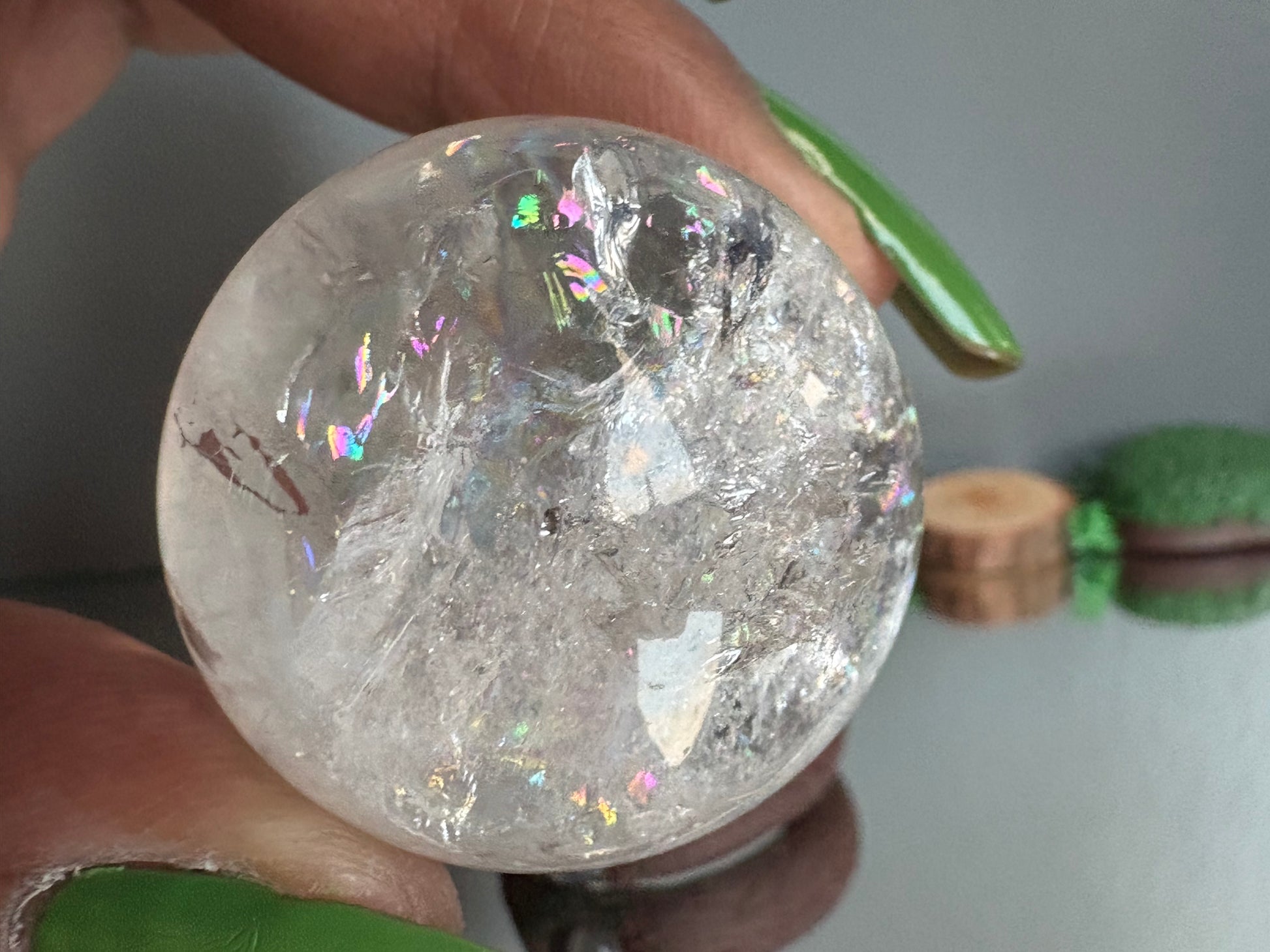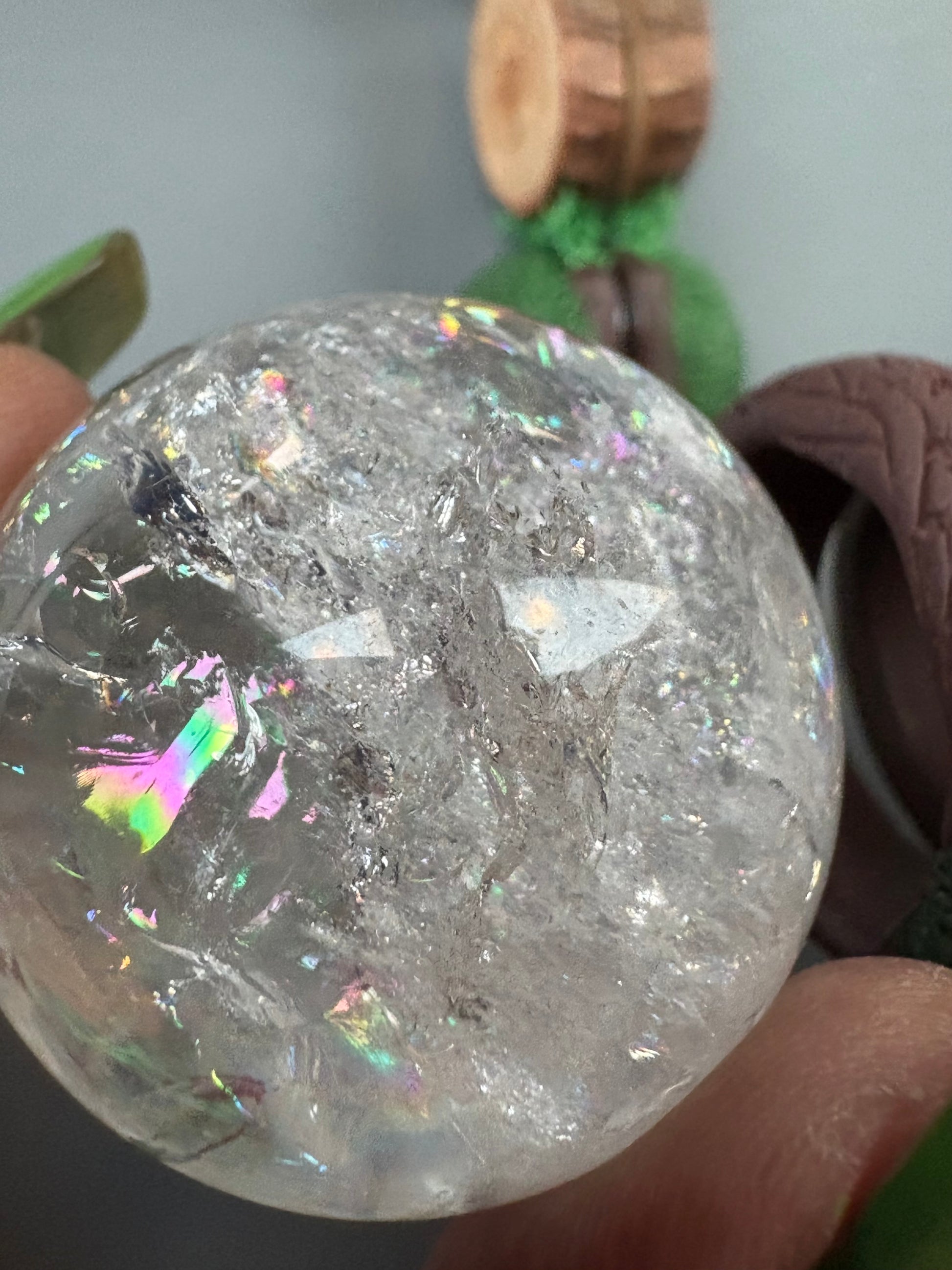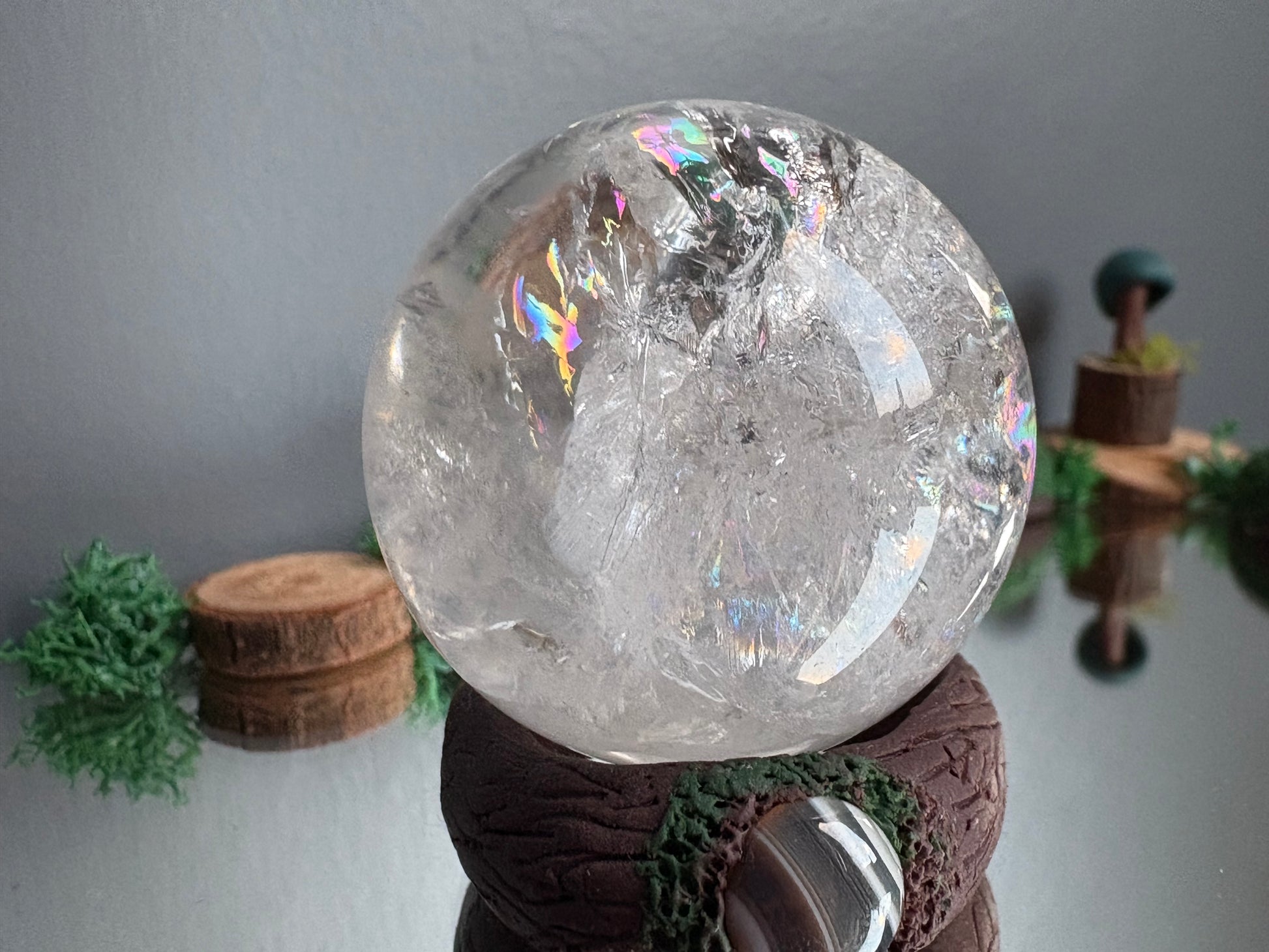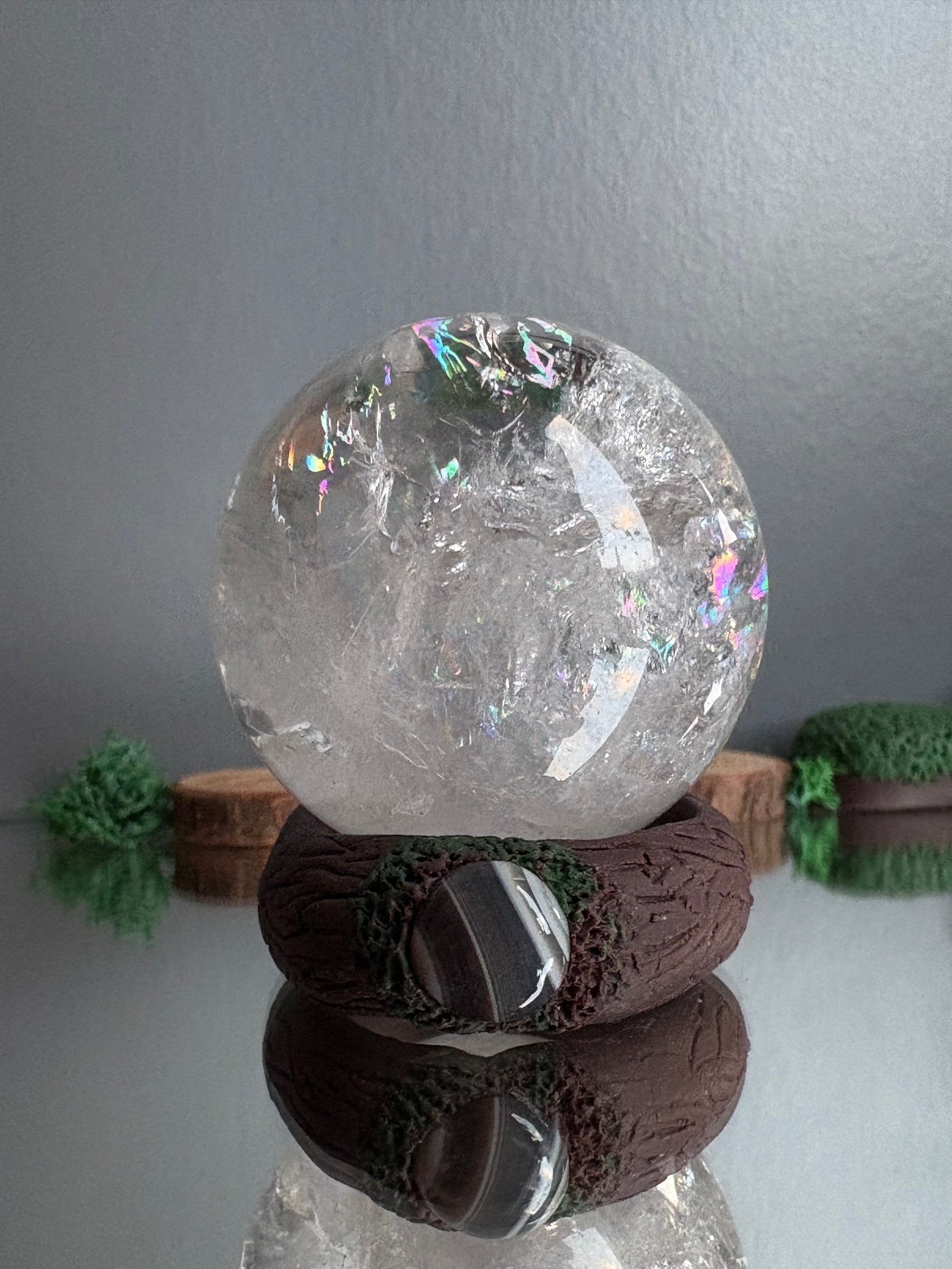 Clear quartz rainbow filled sphere & Banded Agate set into an enchanted forest sphere ring holder can also be used as a ring if you’re feeling like a forest fairy!