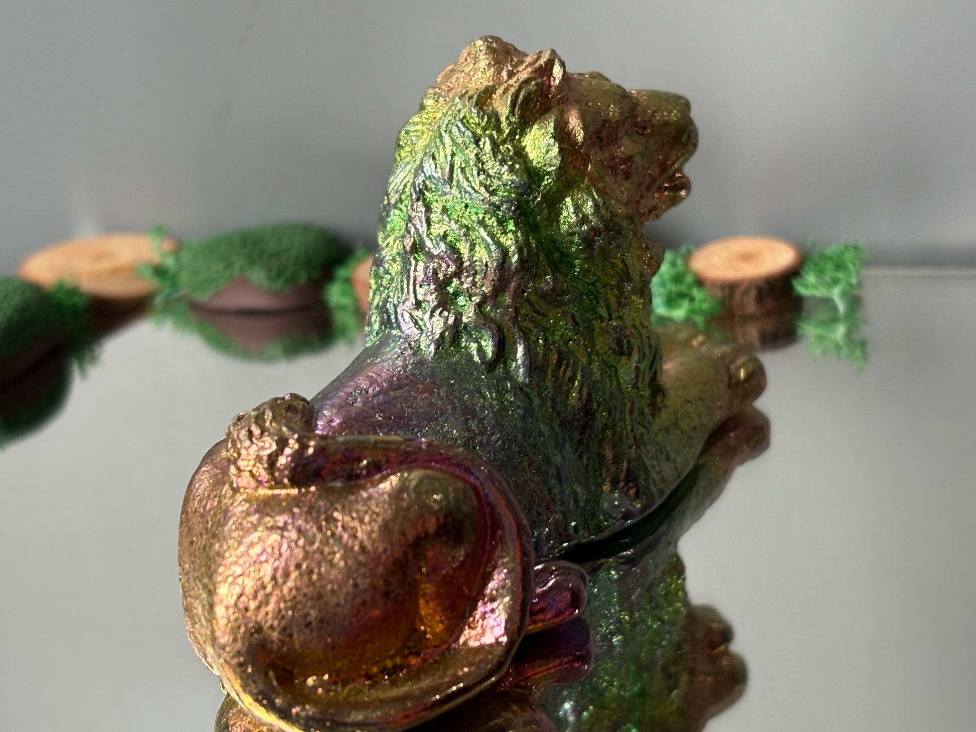 Stunning Lion carving made out of Rainbow coloured bismuth