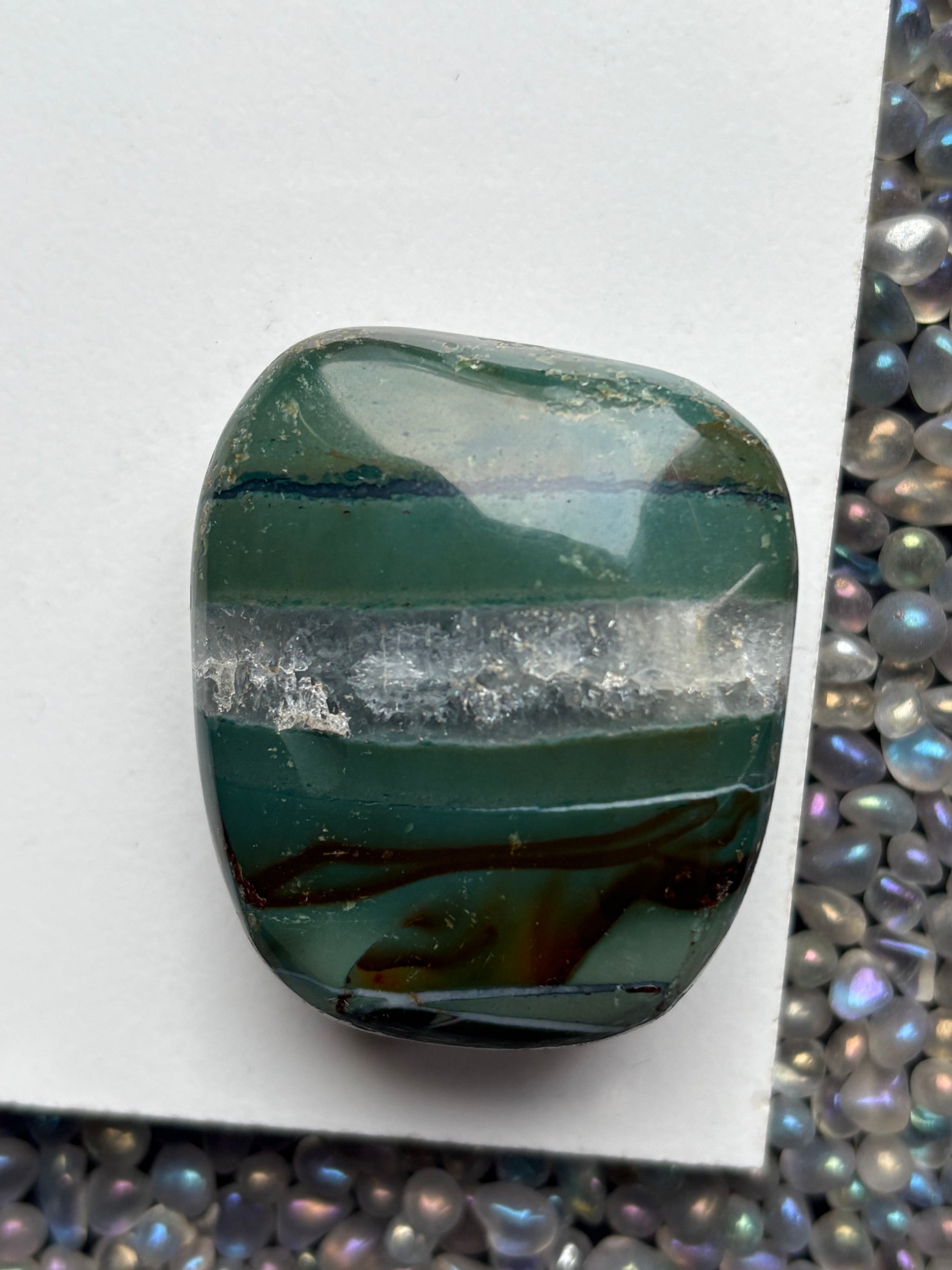 Ocean Jasper is a combination of chalcedony, microcrystalline quartz and other minerals, resulting in colourful bands and patterns. Also known as the “Atlantis Stone”. This crystal assists in accepting responsibility and instills patience.