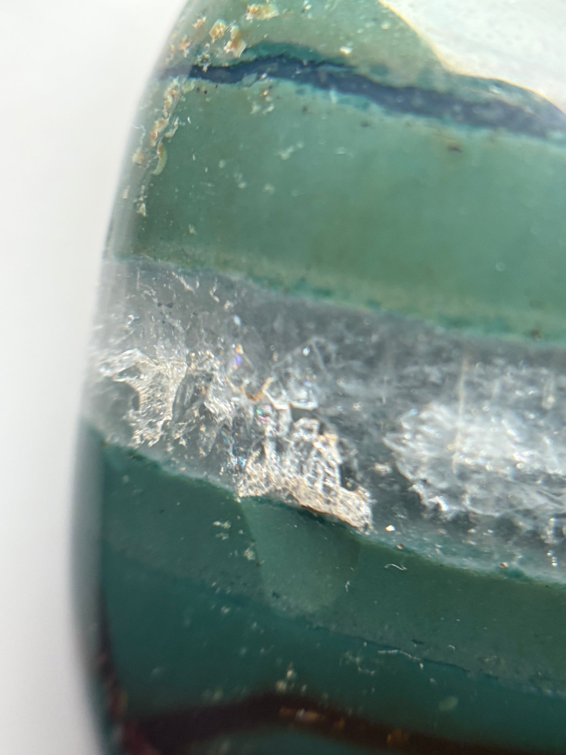 Stunning Teal ocean jasper crystal gemstone palmsrone with a glittery Quartz side